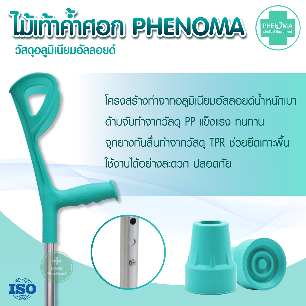 ไม้เท้าค้ำศอก PHENOMA รุ่น PWC-07-1 สีเขียวมินต์ ไม้เท้าหัดเดิน ไม้เท้า อลูมิเนียม ปรับระดับได้ 10 ระดับ มาตรฐานอย.