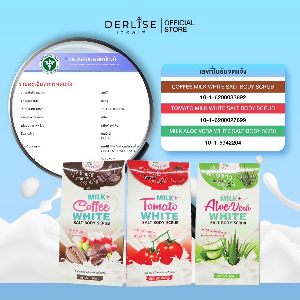 เกลือขัดผิวขาว เกลืออาบน้ำ Derlise เนื้อสครับเนียนนุ่มไม่บาดผิว 300g. 🌼