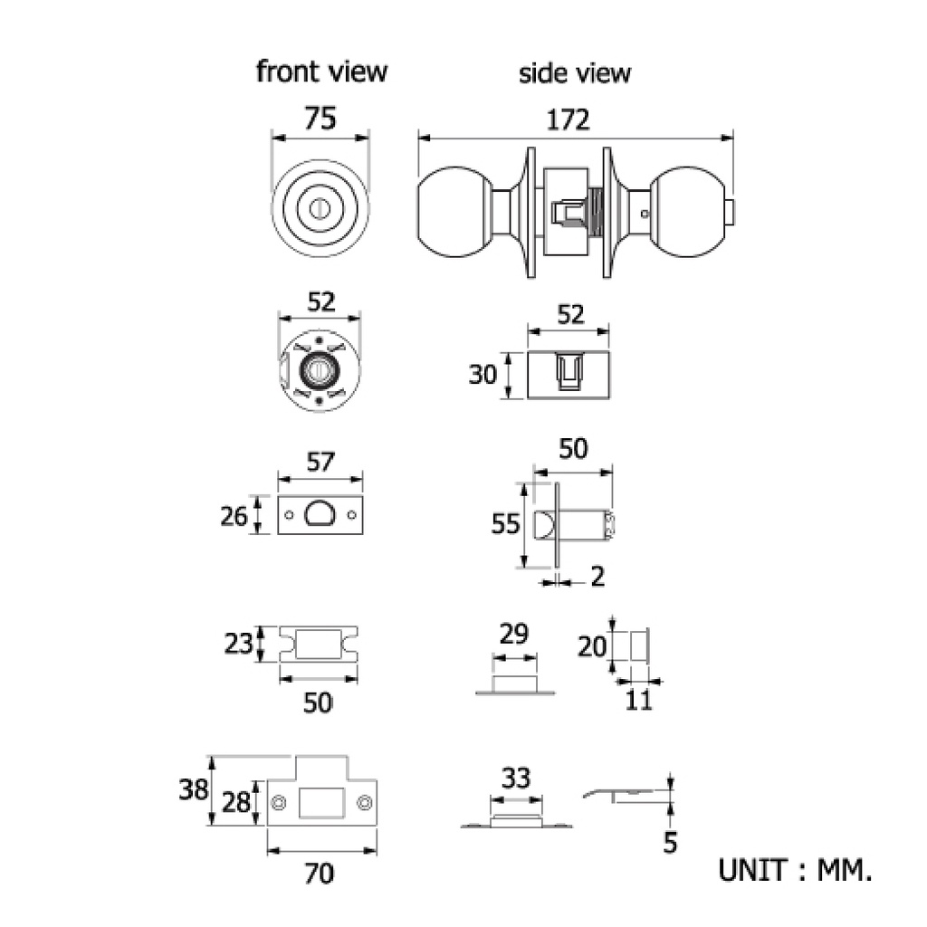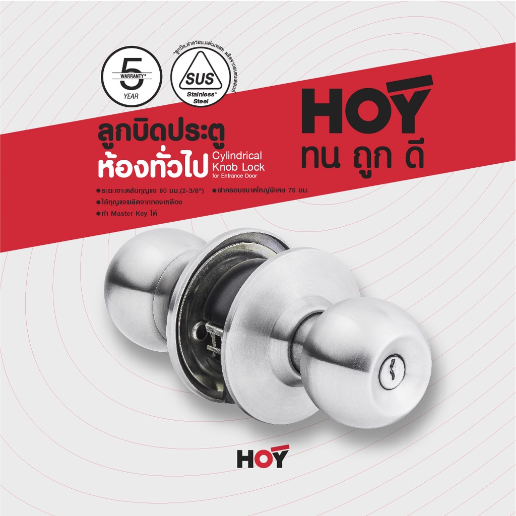 HOY ลูกบิดประตู แบบมีลูกกุญแจ สำหรับห้องทั่วไป ฝาขนาด 75 มม. HG445-ENTRAN