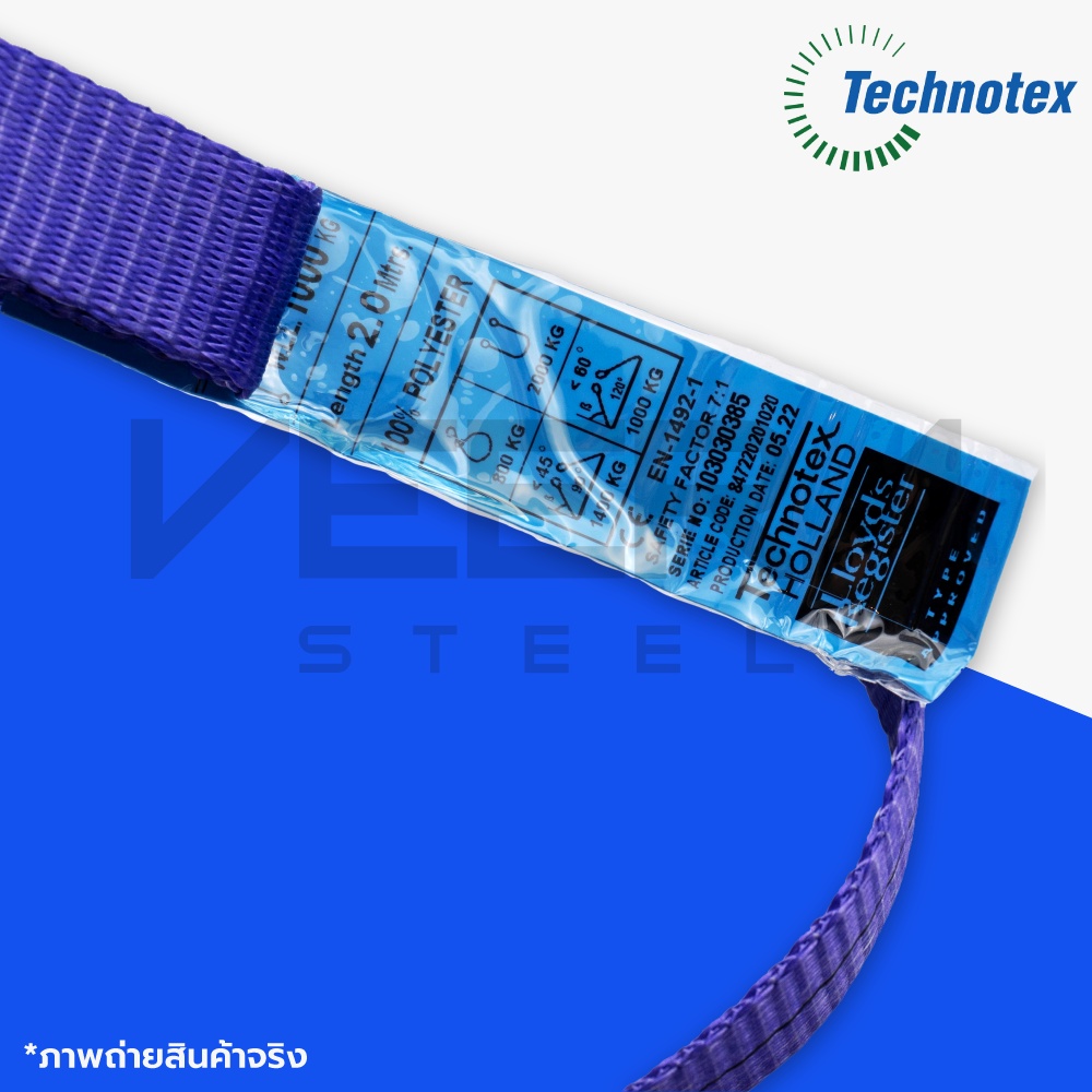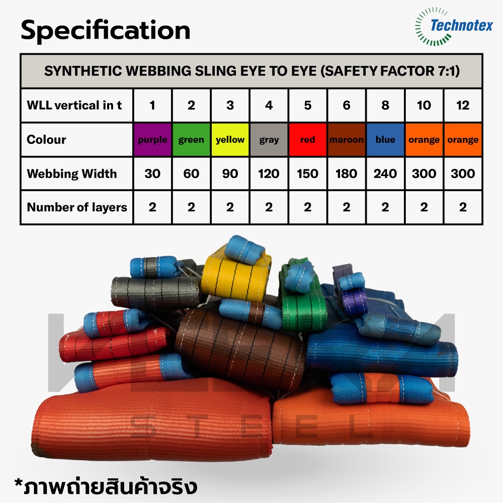 สลิงผ้าใบแบน Technotex รับน้ำหนักได้ 1ตัน ความยาว 1–5 เมตร มาตรฐานสากล Safety Factor 7:1 – Veerasteel