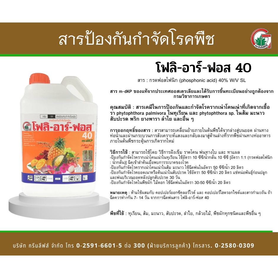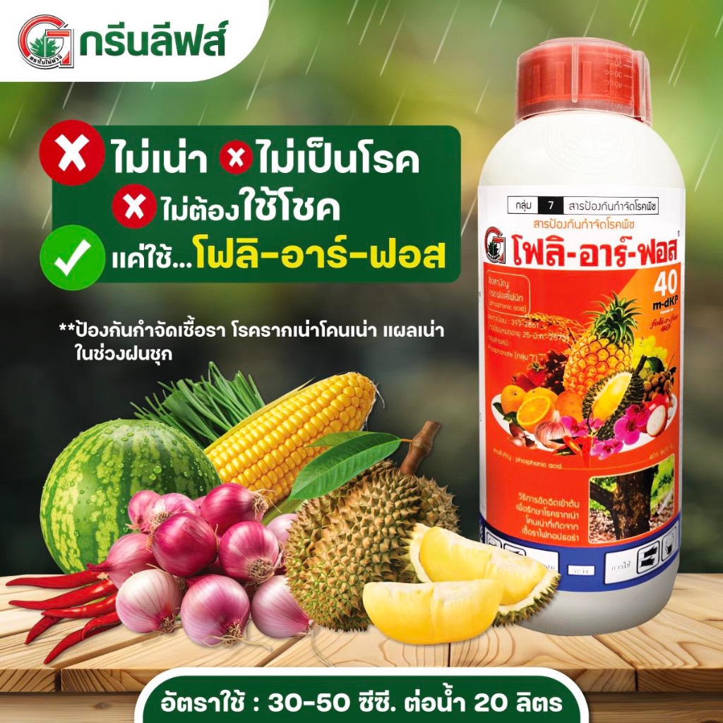 โฟลิอาร์ฟอส 400 1ลิตร ต้นตำรับ ฝังเข็มทุเรียน กรดฟอสโฟนิก สารกำจัดเชื้อรา รากเน่า โคนเน่า โรคพืช