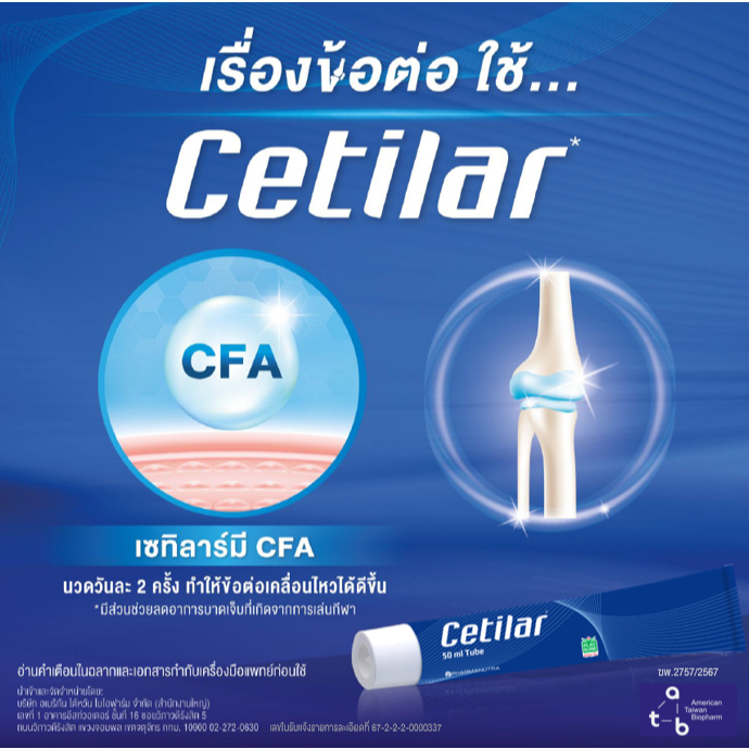 ✨ซื้อ 3 แถม 3 หลอดพกพา 10 ml.✨เซทิลาร์ Cetilar Cream ครีมทาลดปวดเข่า เข่าเสื่อม ของแท้จากบริษัท