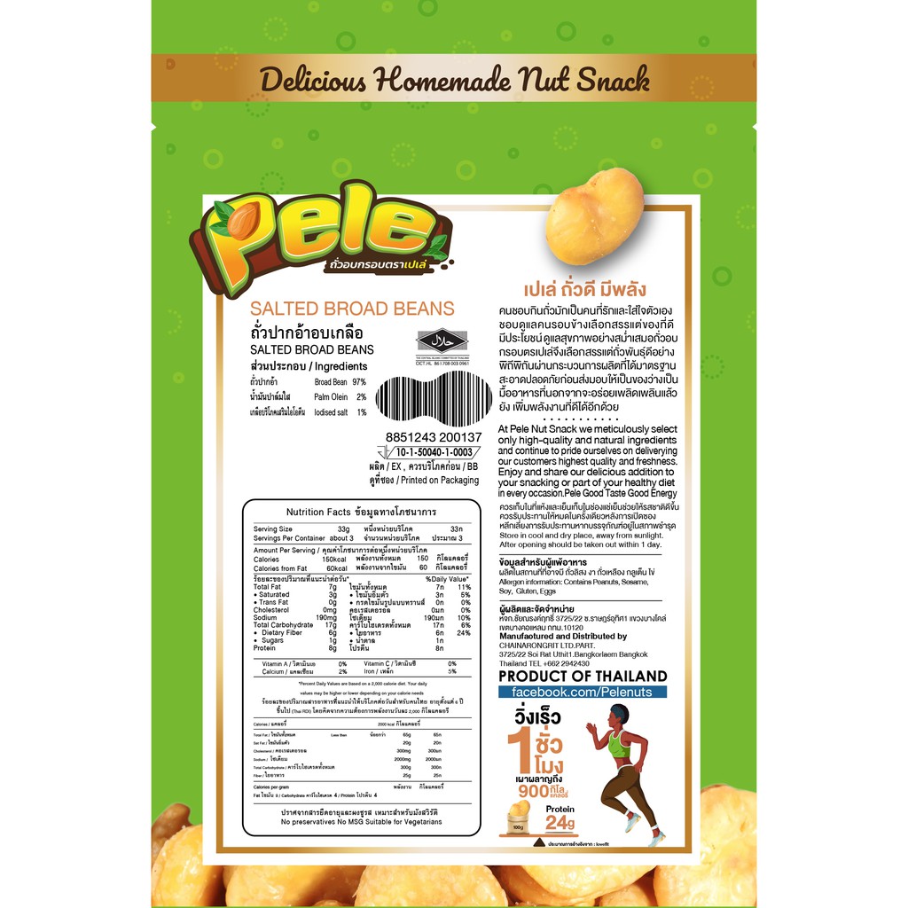 ถั่วปากอ้าอบเกลือ (ถั่วปากอ้า ปากอ้าปรุงเกลือ) ตราเปเล่ Pele ห่อหนัก 100 กรัม จำนวน 12 ชิ้น ผลิตใหม่
