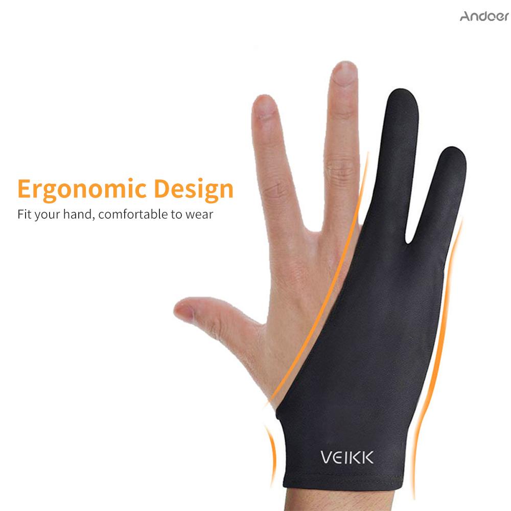 Veikk ถุงมือวาดภาพแบบสองนิ้วน้ําหนักเบากันเหงื่อสําหรับ Veikk Graphics Tablet Graphic Monitor