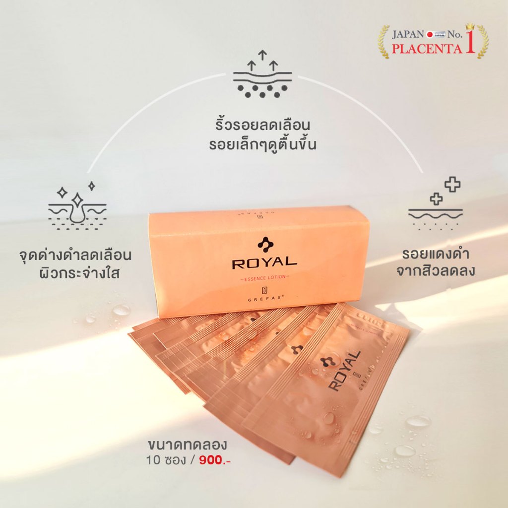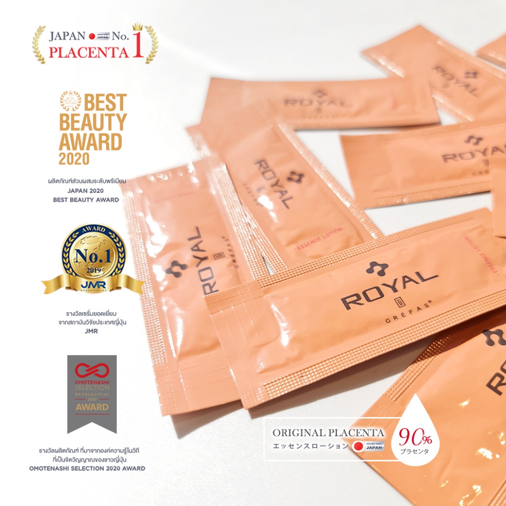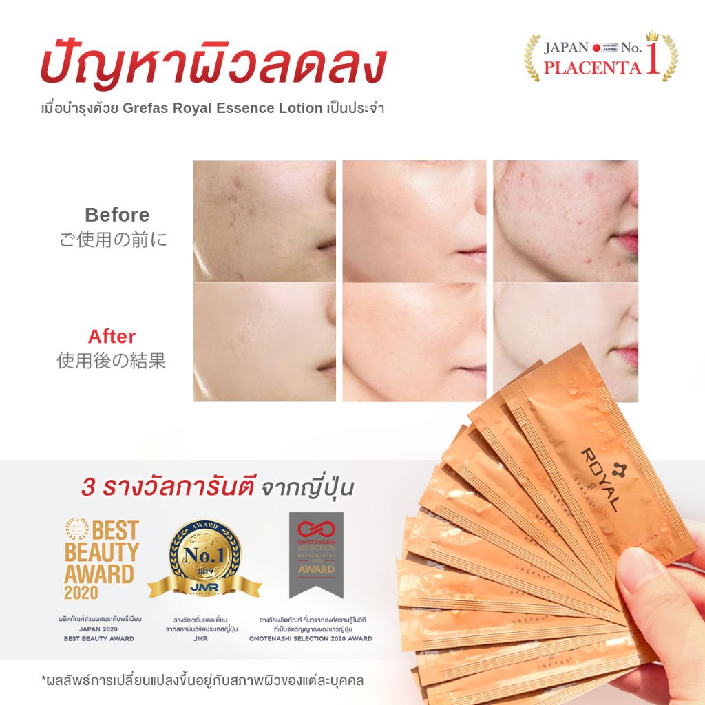 GREFAS ROYAL ESSENCE LOTION เกรฟาส โรยัล เอสเซ้นส์ โลชั่น 10 ซอง ระดับรางวัลชนะเลิศ ปรับผิวหมองคล้ำ ให้เนียนใส