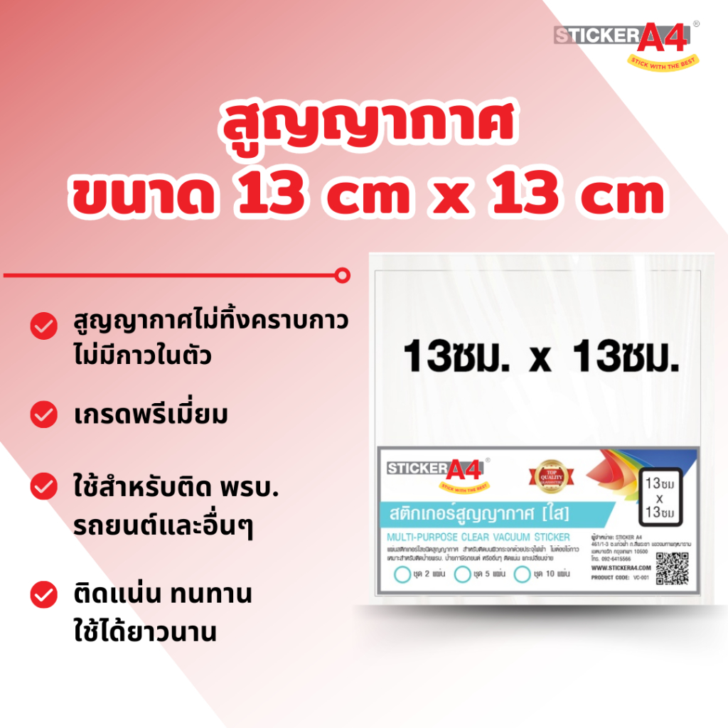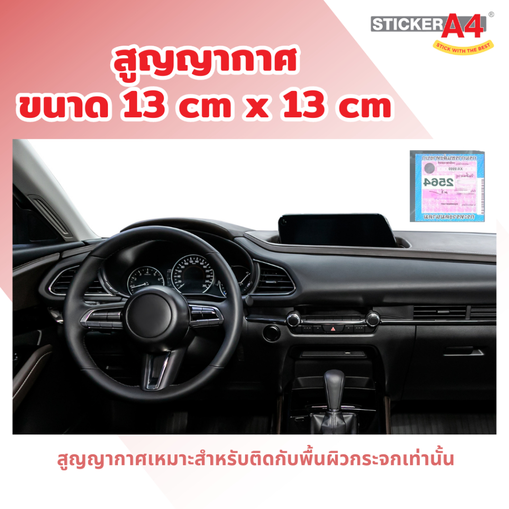 แผ่นสูญญากาศติดป้าย พรบ. กระจก ป้ายภาษี ขนาด 13x13ซม. ตรา StickerA4