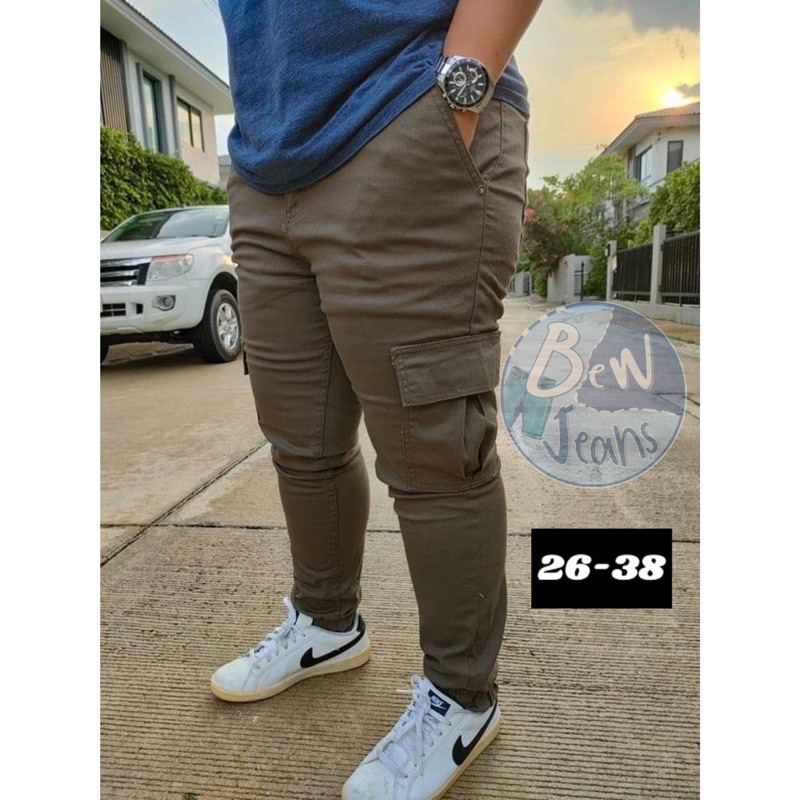กางเกงผ้าคาโก้อย่างดี มีกระเป๋าข้าง กางเกงจั้มขา เนื้อผ้ายืดใส่สบาย ราคาถูก📌