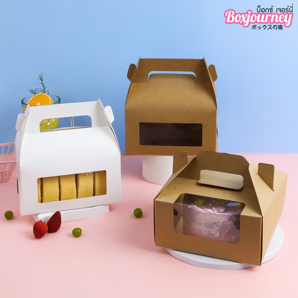 Boxjourney กล่องเค้กหูหิ้วมีหน้าต่าง 9x17x9 ซม.(20ใบ/แพค)