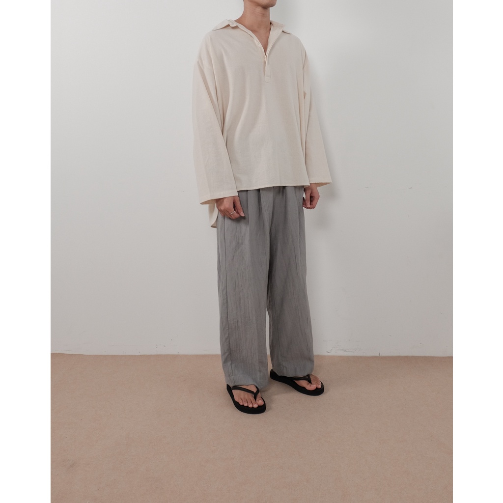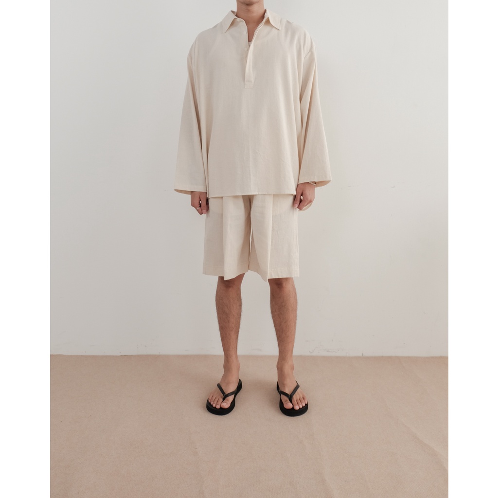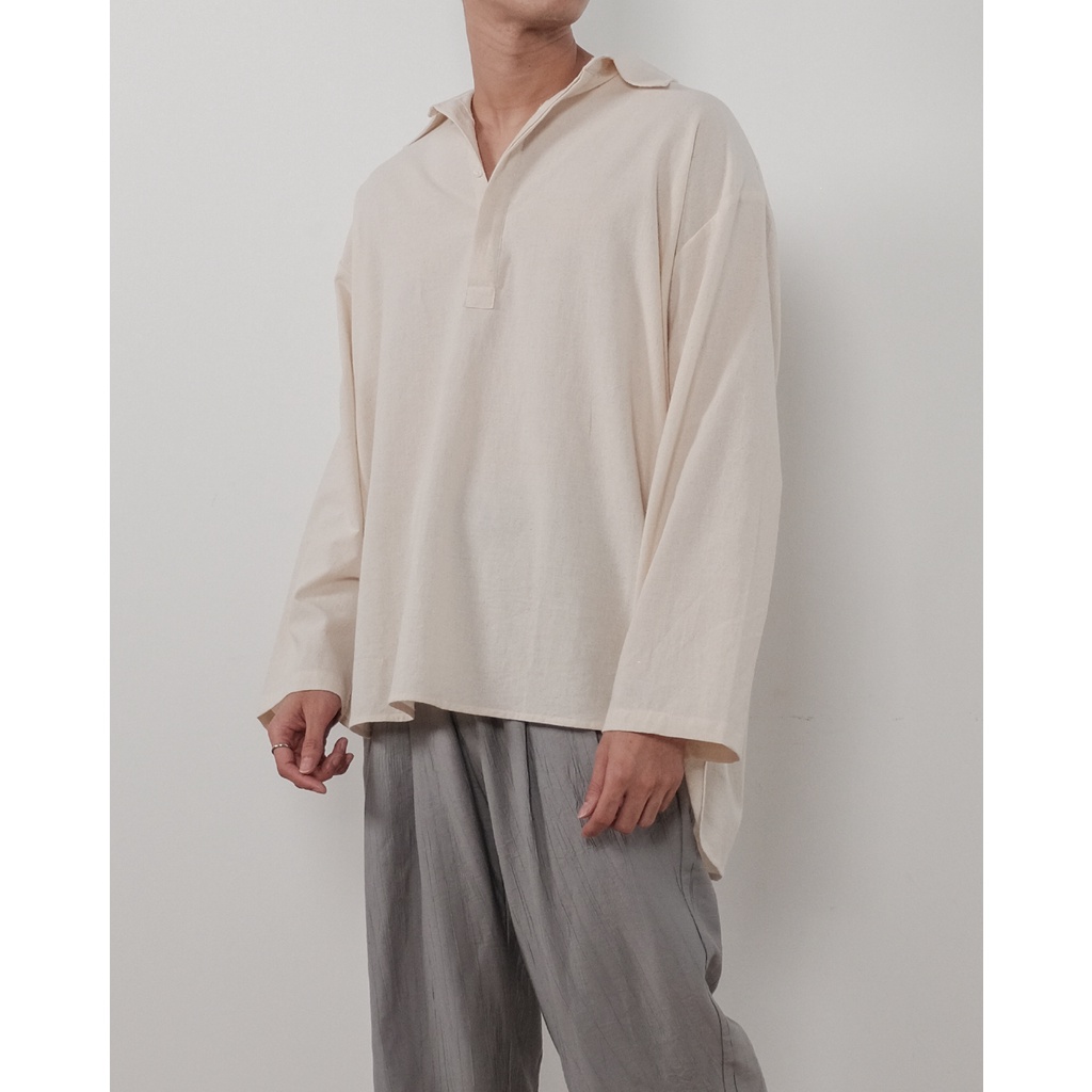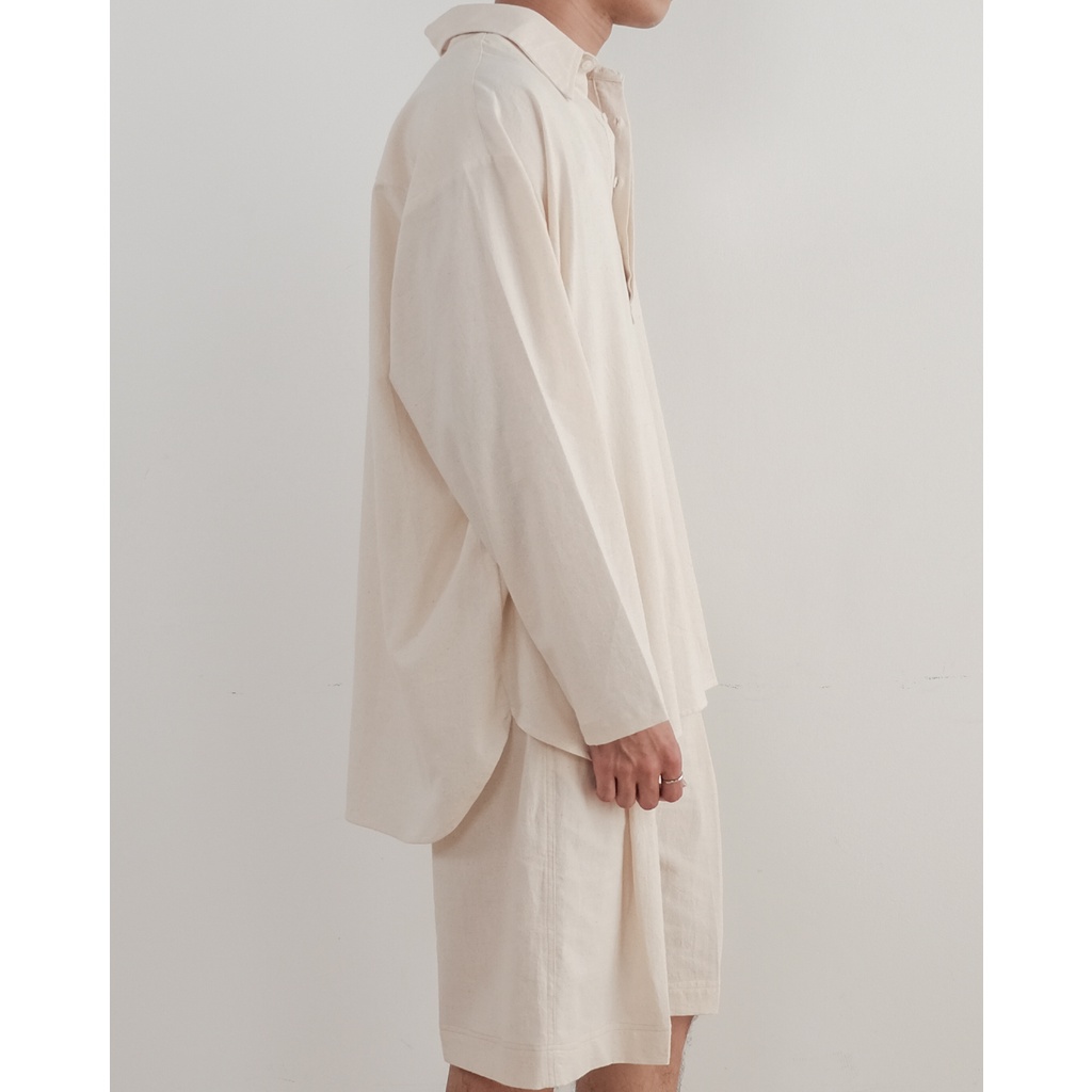 05 Haus Maxi Wide Shirt in Natural | เสื้อเชิ้ตคอเปิดทรงหลวมพิเศษผ้าลินินฝ้าย สีเบจธรรมชาติ