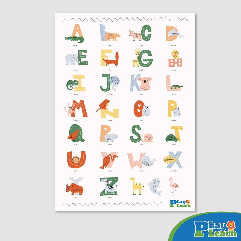 โปสเตอร์ ABC ลายสัตว์ Poster ABC Animal Play Plearn Kid ตกแต่งห้องสำหรับเด็ก