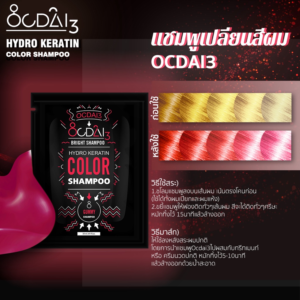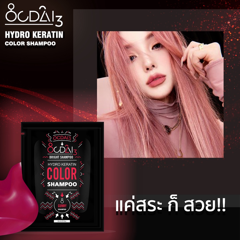 ✨SPACE COLOR : แชมพูเปลี่ยนสีผมโทนชมพูอมส้ม Ocdai3 Shampoo สำหรับเติมสีผมหรือลงสีผม สี"Gummy Shampoo" ขนาดซอง 30ml