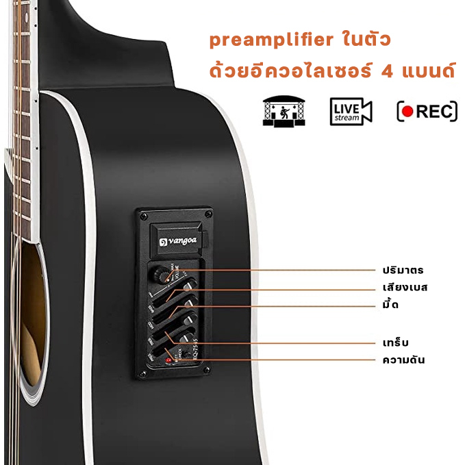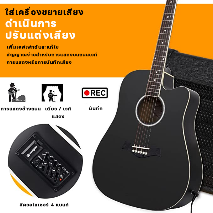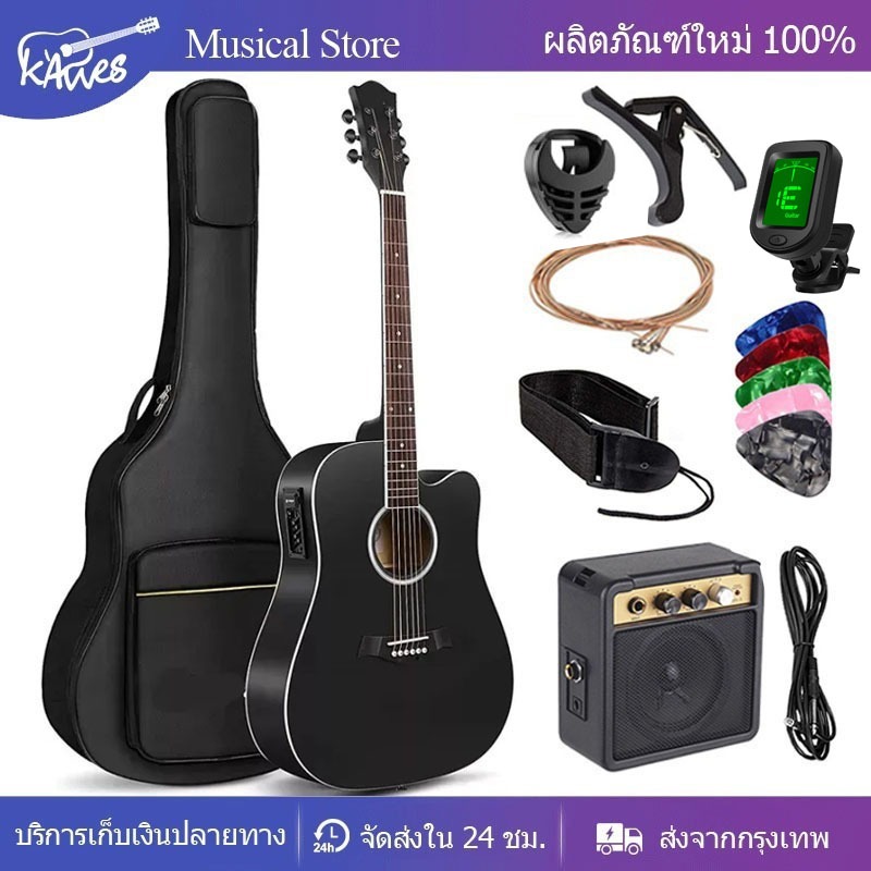 กีต้าร์โปร่งไฟฟ้า38/41 กีต้าร์โปร่ง มีจูนเนอร์ในตัว ปรับได้เยอะ เสียงดี สายต่ำเล่นง่ายคอเล็ก พร้อมของแถม เสียงพุ่งสุดๆ