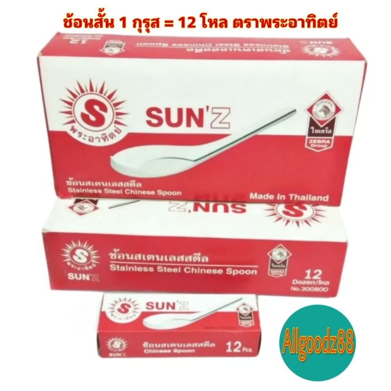 SUN ช้อนสั้นสเตนเลส ขนาดกลาง กินข้าวกินก๋วยเตี๋ยว 1 กุรุส=12 โหล ตราพระอาทิตย์*สามารถออกใบกำกับภาษีได้*