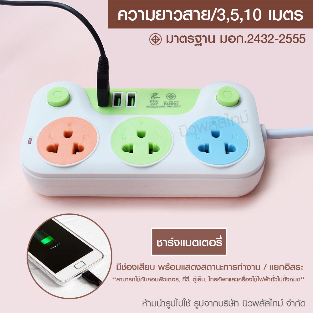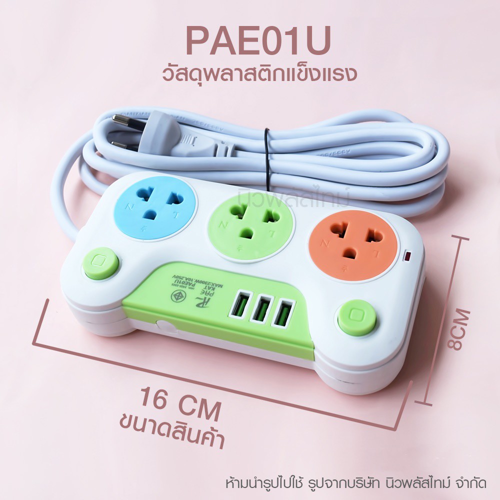 ส่งด่วน! ปลั๊กไฟ ปลั๊ก มอก. แท้100% รางปลั๊กไฟ 4ช่อง 3ช่อง 3USB 2300w PAE รุ่น PAE-01U PAE-04U 3เมตร 5เมตร 10เมตร
