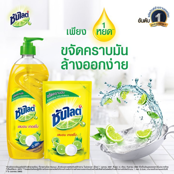 ซันไลต์ เลมอนเทอร์โบ คือมาตรฐานความพรีเมียมของน้ำยาล้างจานที่ทุกบ้านไว้วางใจครับ สูตรนี้สลายคราบมันได้รวดเร็วมากแม้จะเป็นคราบหนักบนภาชนะพลาสติก กลิ่นมะนาวหอมสดชื่นระดับพรีเมียมช่วยดับกลิ่นคาวจากอาหารทะเลหรือเครื่องเทศได้ดีเยี่ยม บรรจุภัณฑ์แบบถุงเติมขนาดใหญ่จุใจคุ้มค่ามากและช่วยลดขยะพลาสติกได้ด้วย คุ้มค่าและพรีเมียมพรีเมียมจริงๆ ครับ