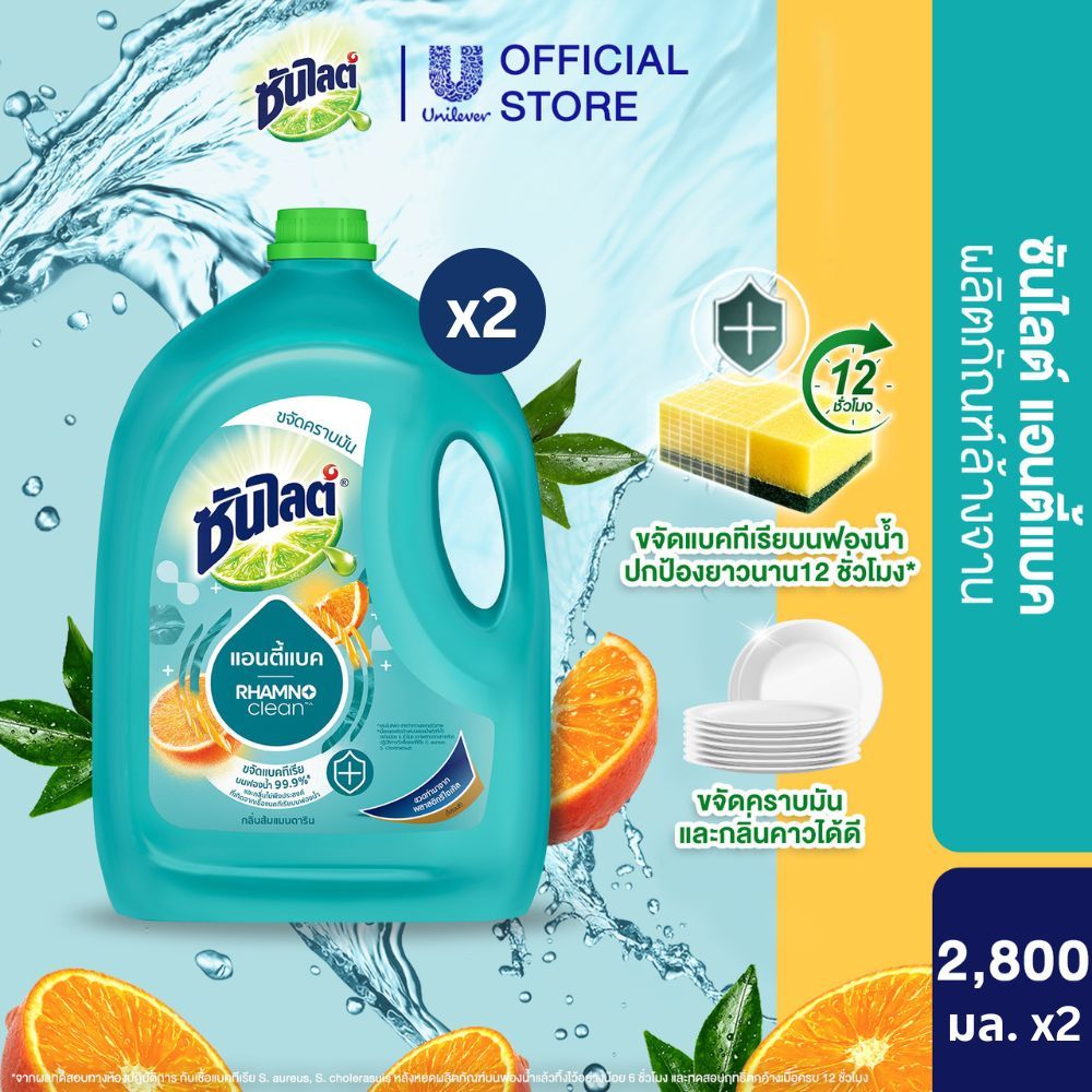 ซันไลต์ น้ำยาล้างจาน ขจัดคราบมัน 2800 - 3200 มล x2 Sunlight Dish Washing 2800 - 3200 ml x2