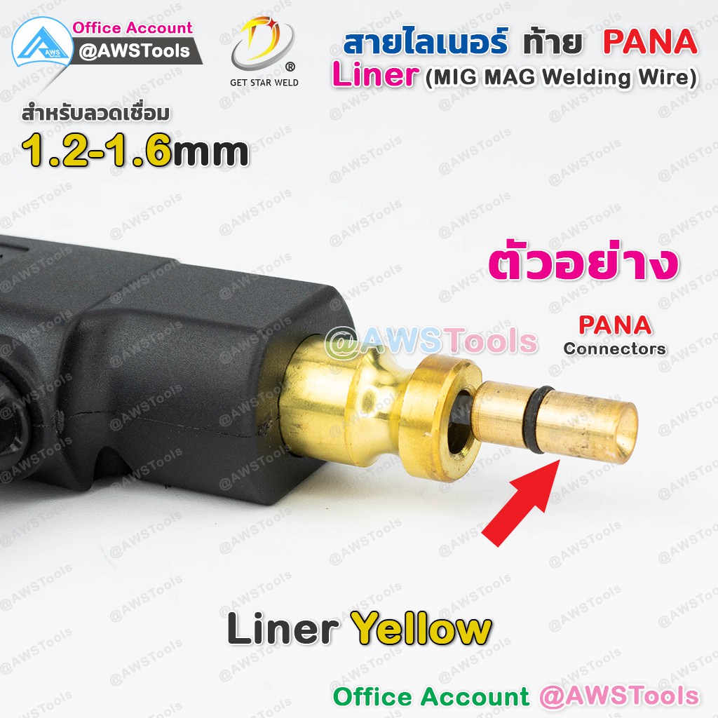 สาย ลายเนอร์ สายไลเนอร์ ท้าย PANA สีเหลือง 1.2-1.6mm สำหรับงานเชื่อม MIG/MAG #ไลเนอร์ #ไลน์เนอร์ #liner #MIG #MAG