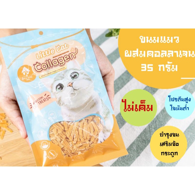 ขนมแมว ดีจังด็อก Little cat ขนมแมวผสมคอลลาเจน ลิตเติ้ลแคท 35กรัม ไม่เค็ม เสริมสร้างข้อกระดูกและบำรุงขนสวย