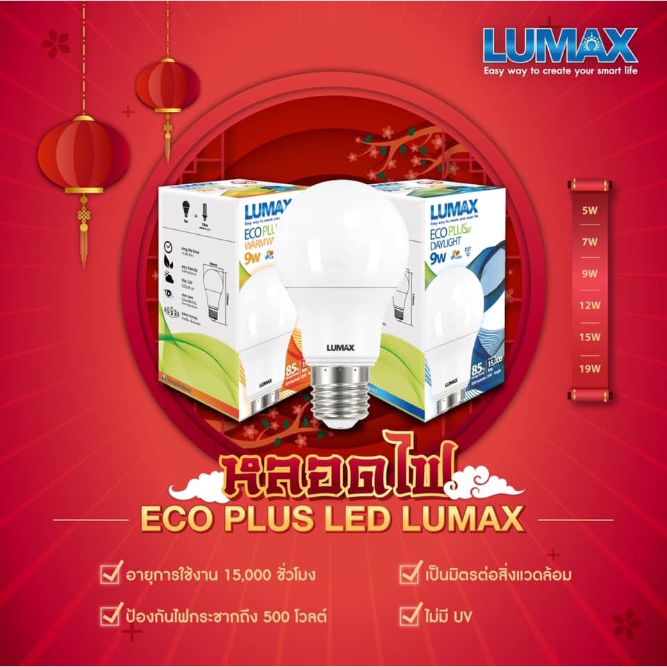 Lumax L&E LED Bulb A60 หลอดไฟบ้าน E27 9W แสงเหลือง วอร์มไวท์ / แสงขาว เดย์ไลท์