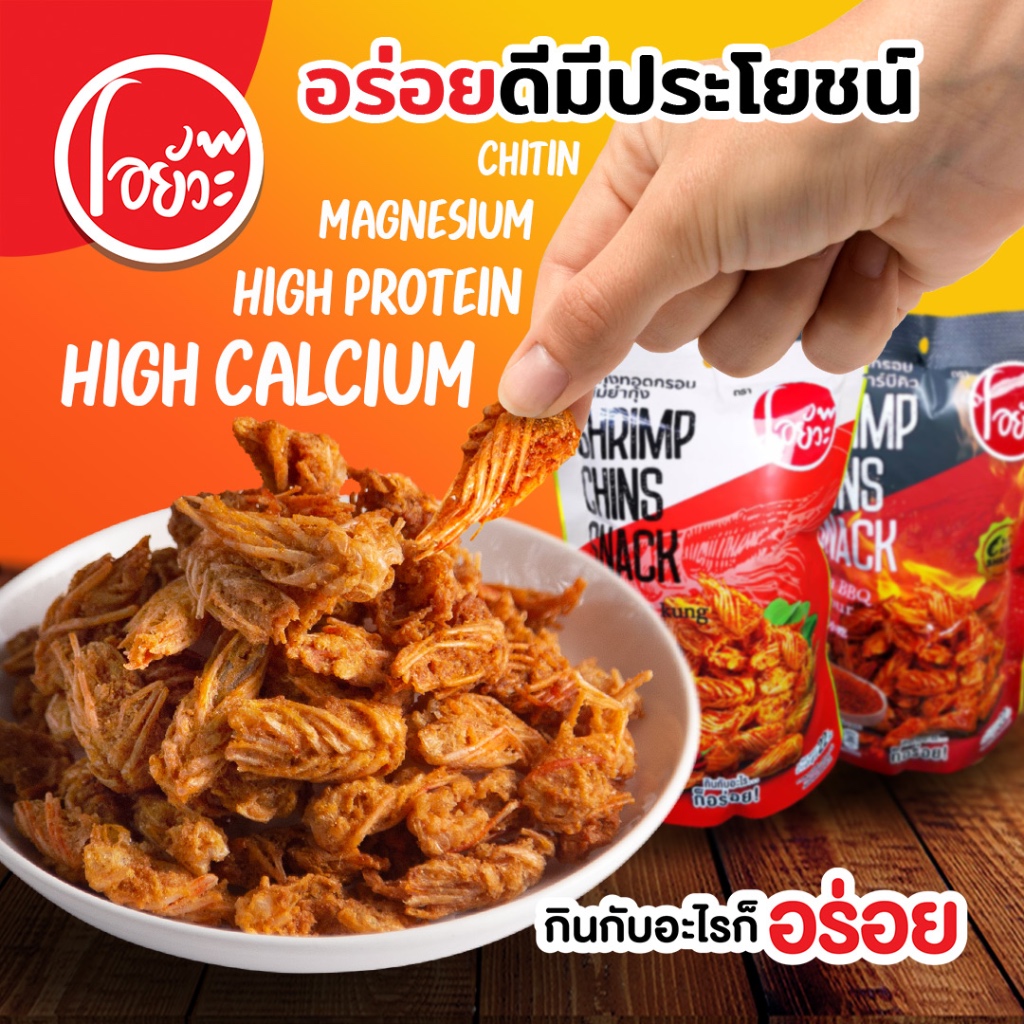 คางกุ้ง ทอดกรอบ รสหม่าล่าบาร์บีคิว และรสต้มยำ 22g ตราโอยั๊วะ Shrimp Chin Snack Tom Yum & Mala BBQ.