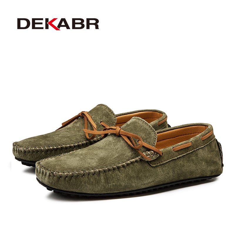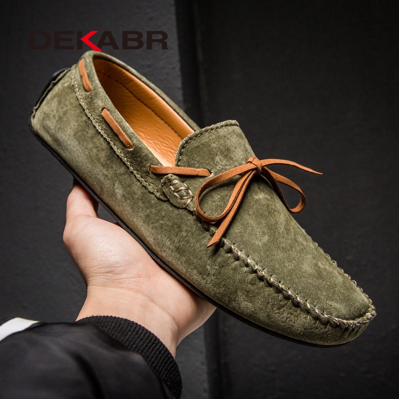 รองเท้าโลฟเฟอร์ลําลอง หนังวัวแท้ ระบายอากาศได้ดี สีเขียว แฟชั่นฤดูร้อน สําหรับผู้ชาย