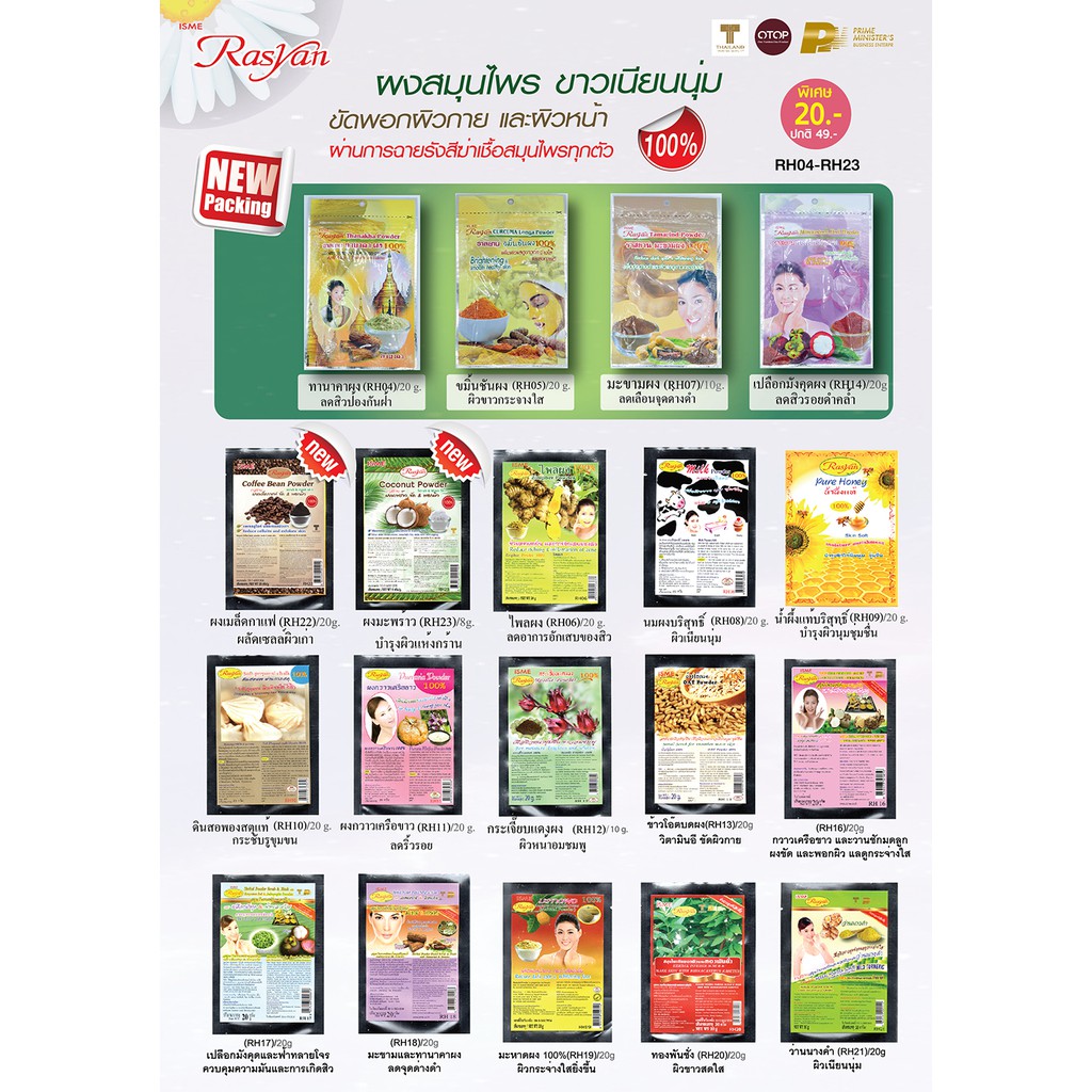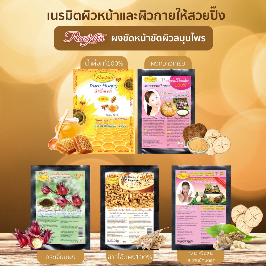 กวาวเครือขาวผง 20 กรัม สูตรลดริ้วรอย |ผ่านการฉายรังสีฆ่าเชื้อแล้ว| Rasyan ราสยาน สมุนไพรขัดและพอกผิว