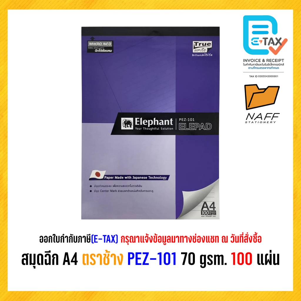 สมุดฉีก สมุดรายงาน ปกกระดาษ A4 ตราช้าง รุ่น PEZ-101 ( มีเส้น ) 70 แกรม 100 แผ่น