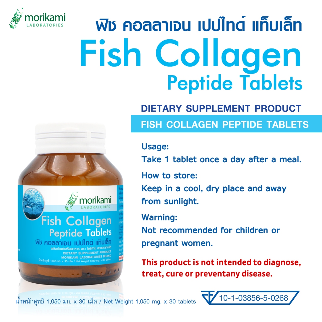 [แพ็ค 3 ขวด] คอลลาเจนเม็ด 1000 มก. ฟิช คอลลาเจนเปปไทด์ โมริคามิ Fish Collagen Peptide 1000 mg. Tablets Morikami