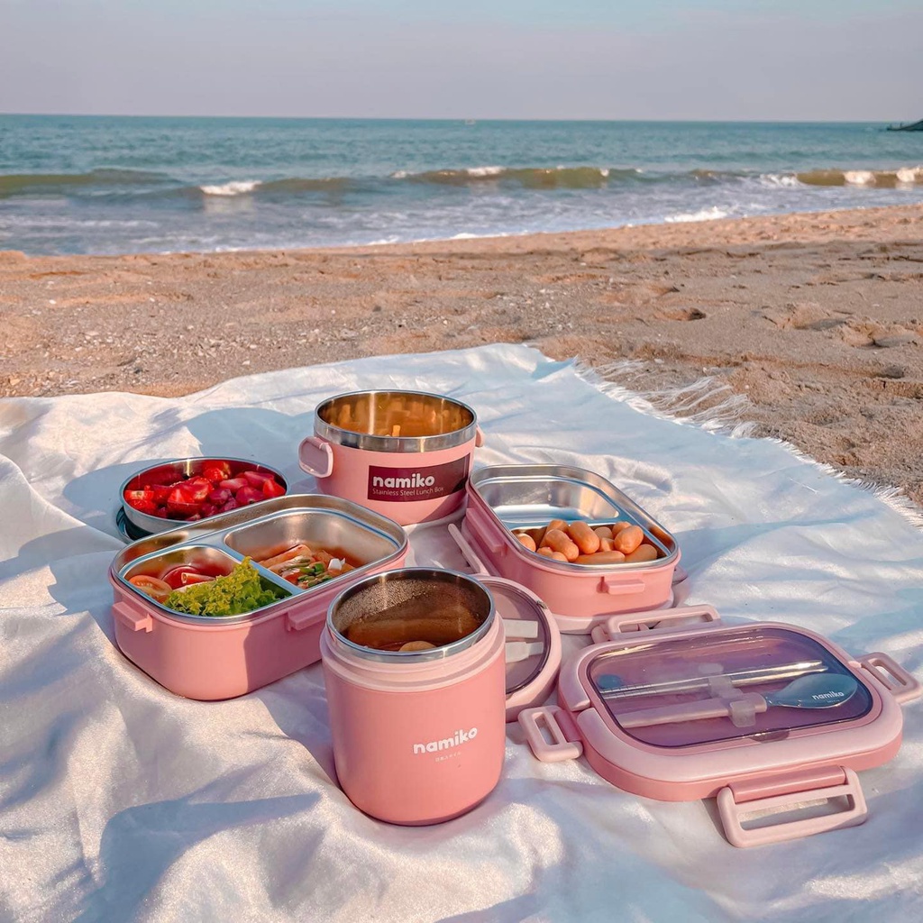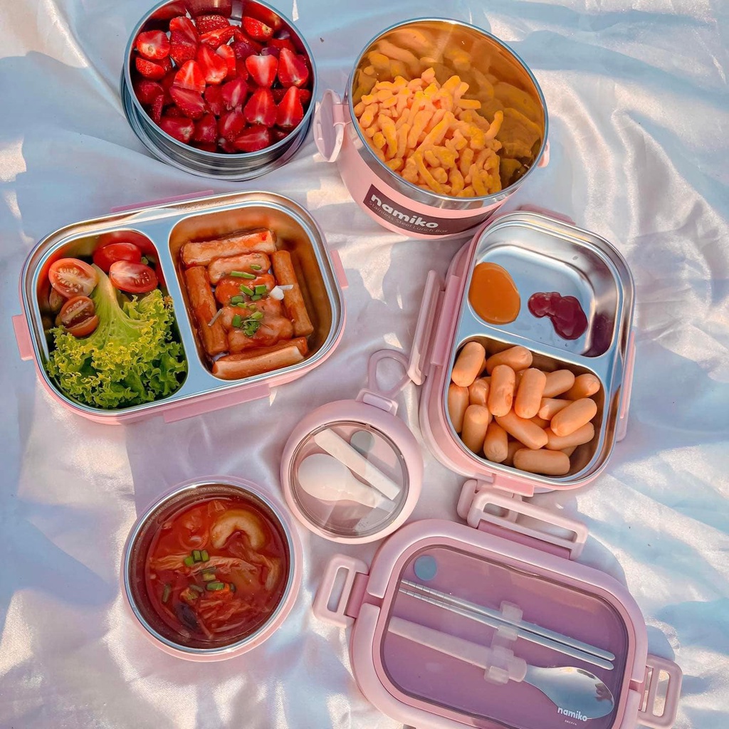 Namiko กล่องอาหารสไตล์เกาหลีและกล่อง 2 ชั้น พร้อมถ้วยซุปสเตนเลส Food Grade