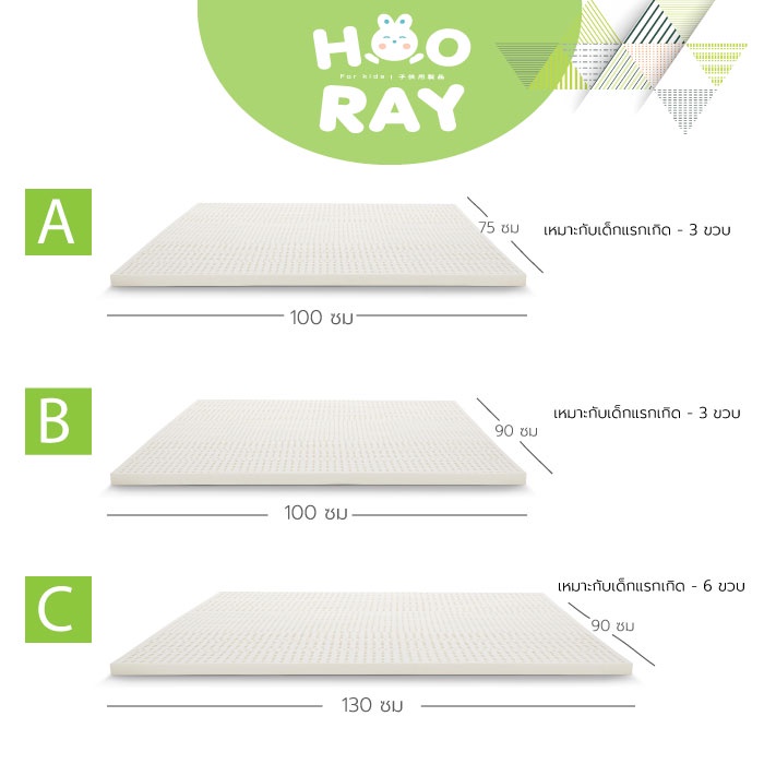Phurinn baby bed ที่นอนเด็ก ที่นอนยางพาราเด็ก ที่นอนเด็กอ่อน รุ่น Hooray!