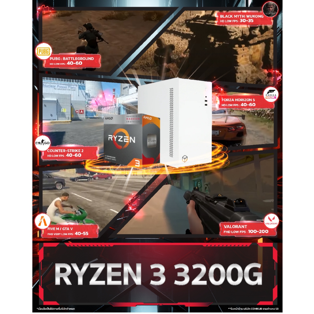 COMKUB คอมประกอบ AMD RYZEN 3 3200G + RAM 16GB มือ 1 ประกัน 3 ปี(ซื้อครบชุดแถม 5)(เลือกเคสทักแชท)(เล่นGTA ROBLOX VALOได้)