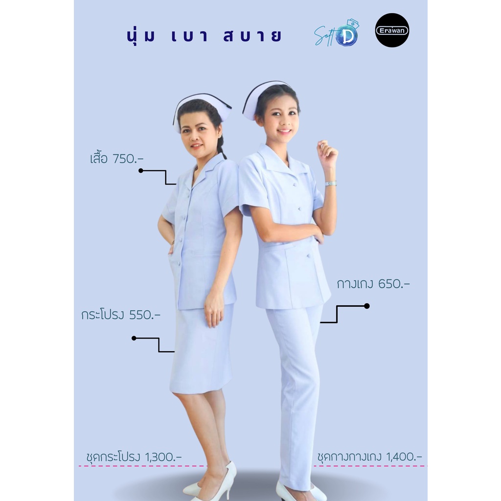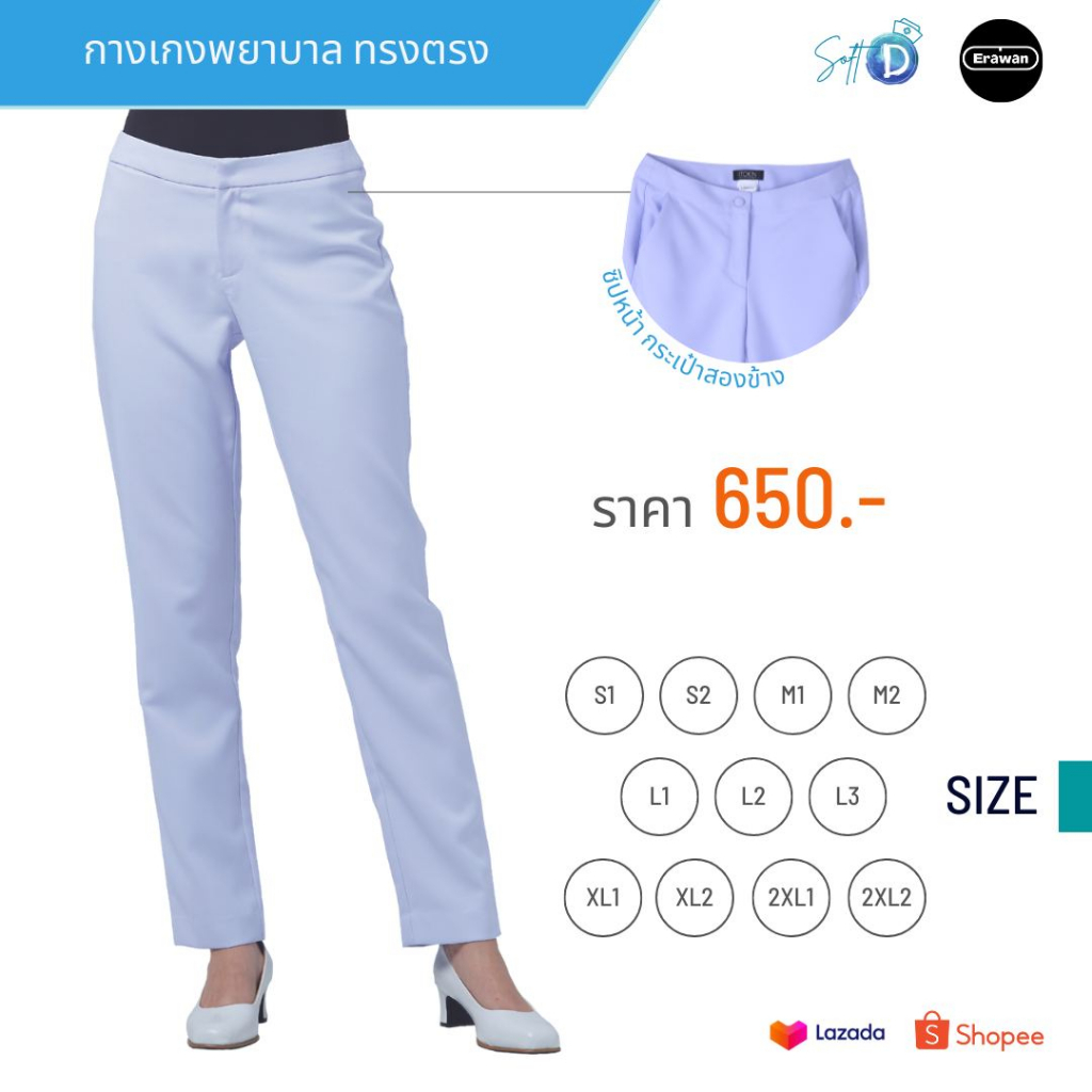 Soft D ส่งฟรี++ กางเกงพยาบาล coolmode ใส่สบาย ผ้าทิ้งตัว ยับยาก สีขาวโอโม่ ไม่หมอง