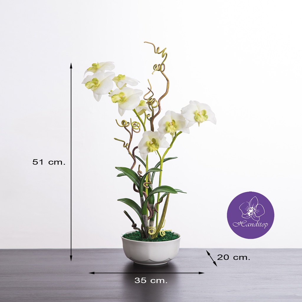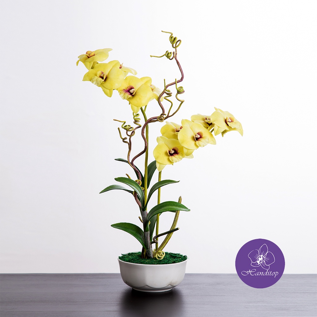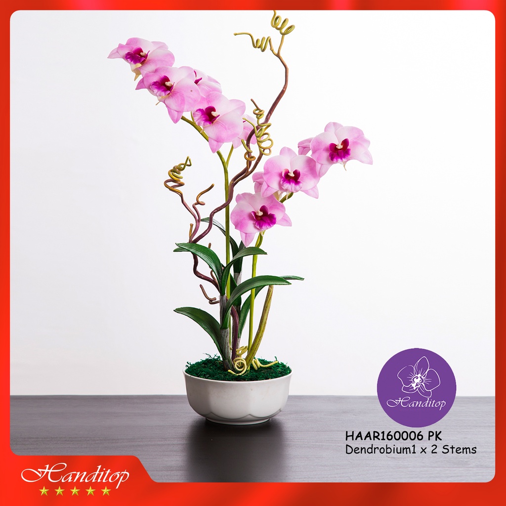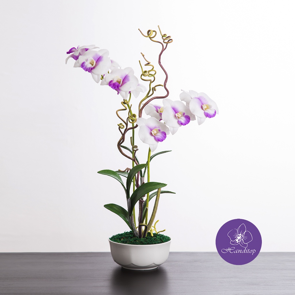 Handitop แจกันดอกไม้ประดิษฐ์ กล้วยไม้เดนโดรเบียม ในแจกันเซรามิค มี 6 สีให้เลือกใช้ สินค้าพรีเมี่ยม