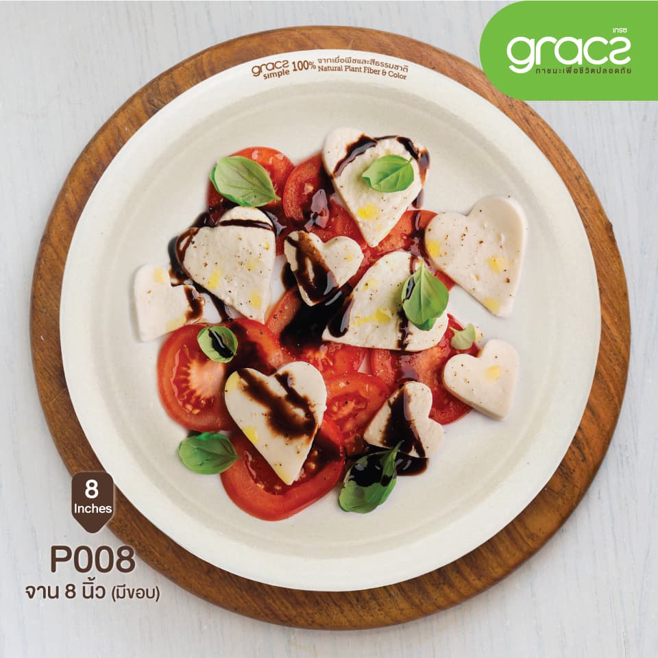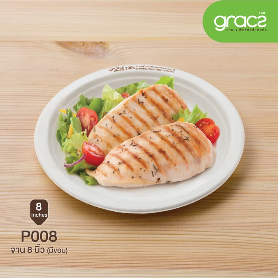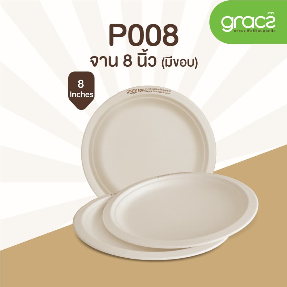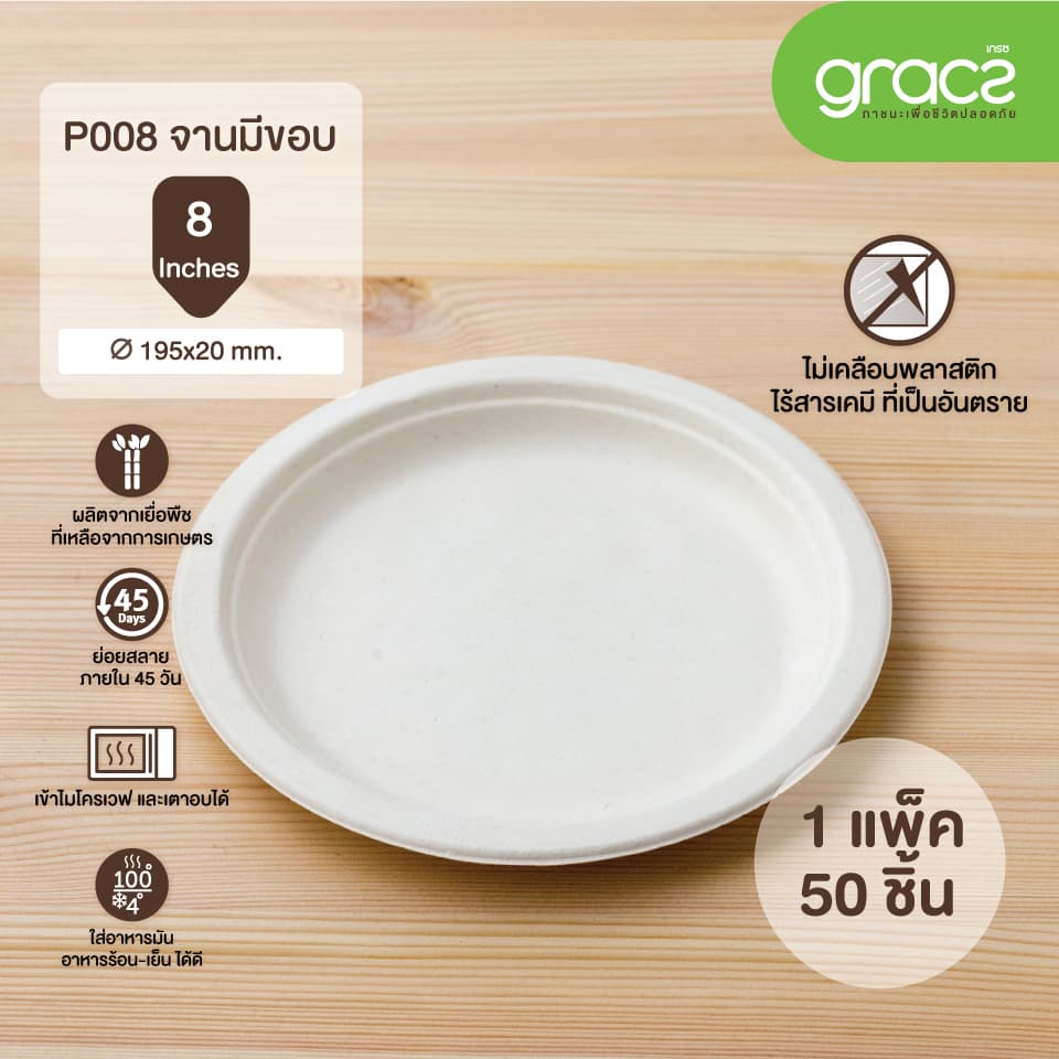 (แพ็ค) จานข้าว จานไบโอ ถาดอาหาร แบบวงกลม มีขอบชานอ้อย 8นิ้ว เกรซซิมเปิล(18P008).