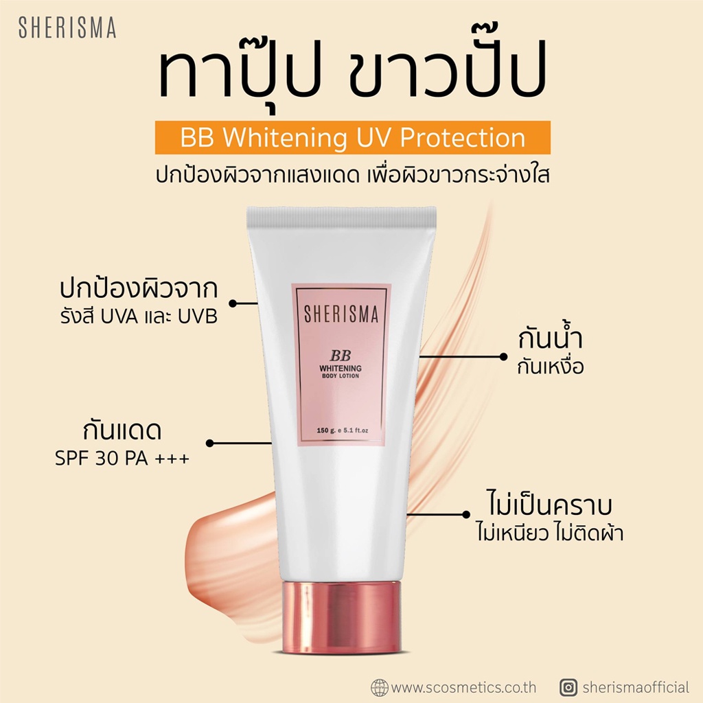 โลชั่นน้ำหอม โลชั่นผิวขาว เชอร์ริสม่า หอม ติดทนนาน Sherisma Whitening Perfume Lotion / BB Whitening UV Protection 150ml.