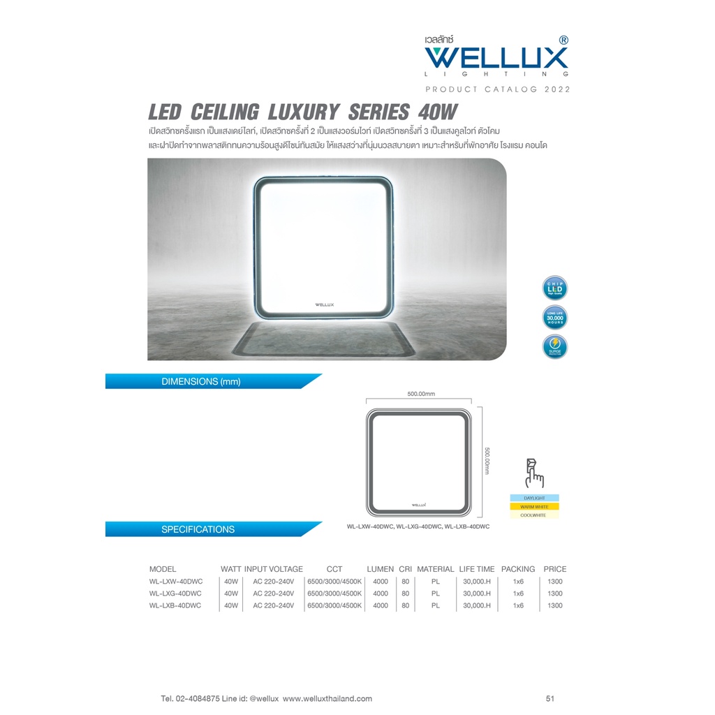 WELLUX โคมไฟเพดานติดลอย 3 แสง 40W LED CEILING LAMP 3 STEP รุ่น LUXRY SERIES