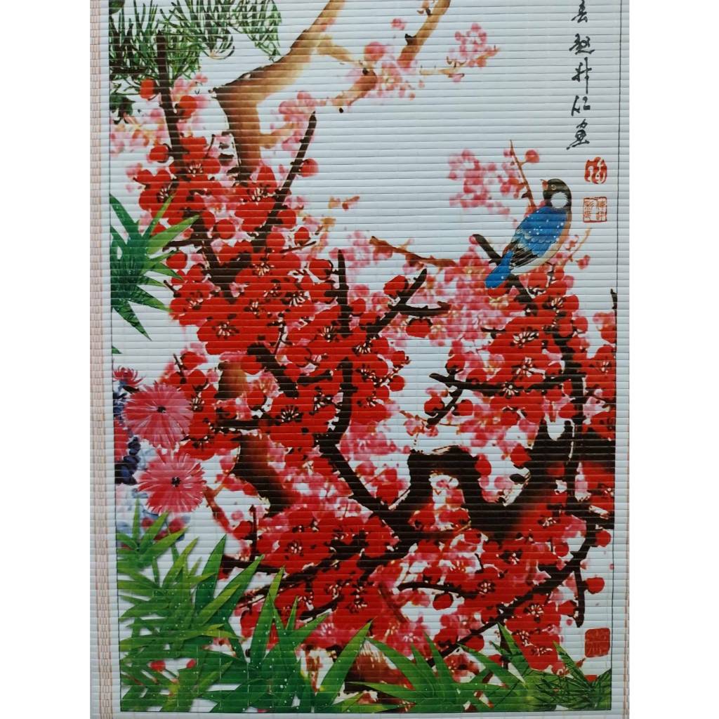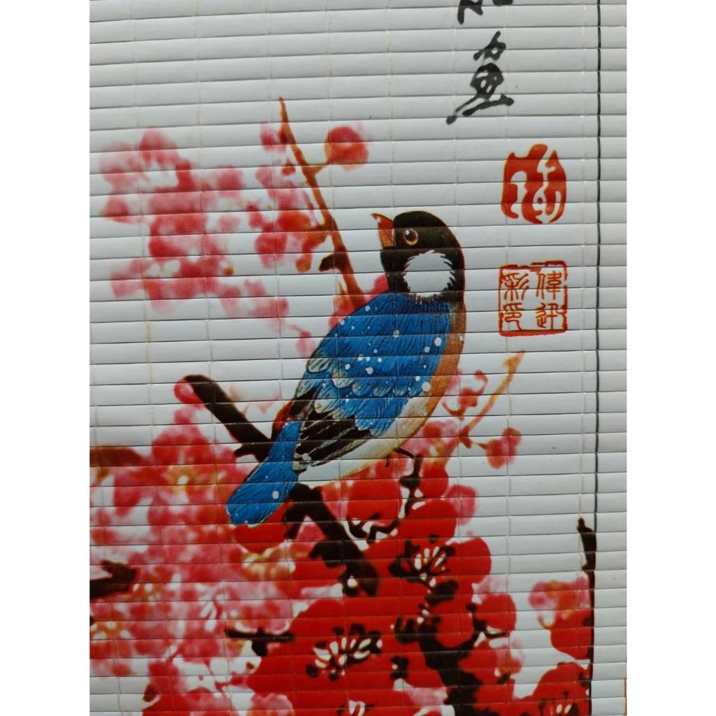 มู่ลี่ลายนกคู่ดอกเหมยพื้นขาว เสริมฮวงจุ้ย