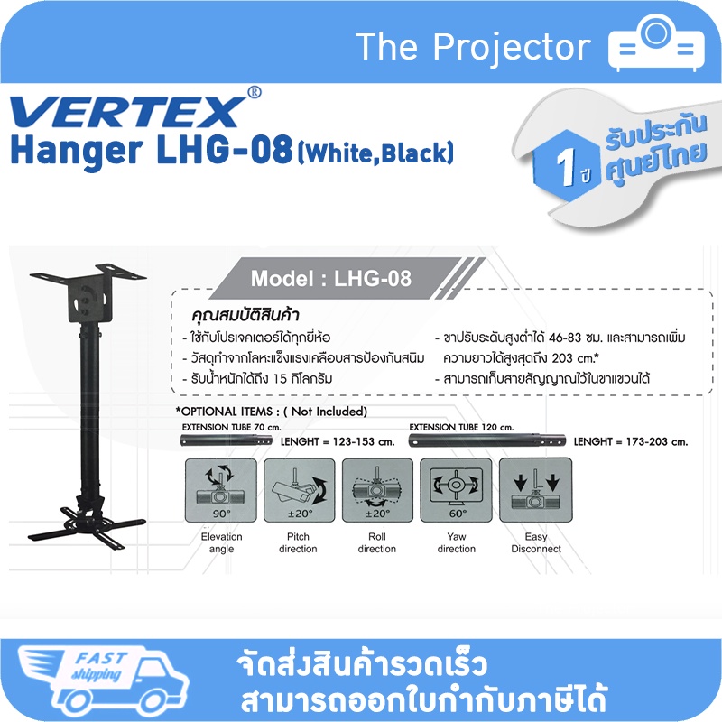 พร้อมส่ง!!! ขาแขวนโปรเจคเตอร์ VERTEX LHG-08 (สีขาว,สีดำ) ***รับประกันศูนย์ไทย 1 ปี***