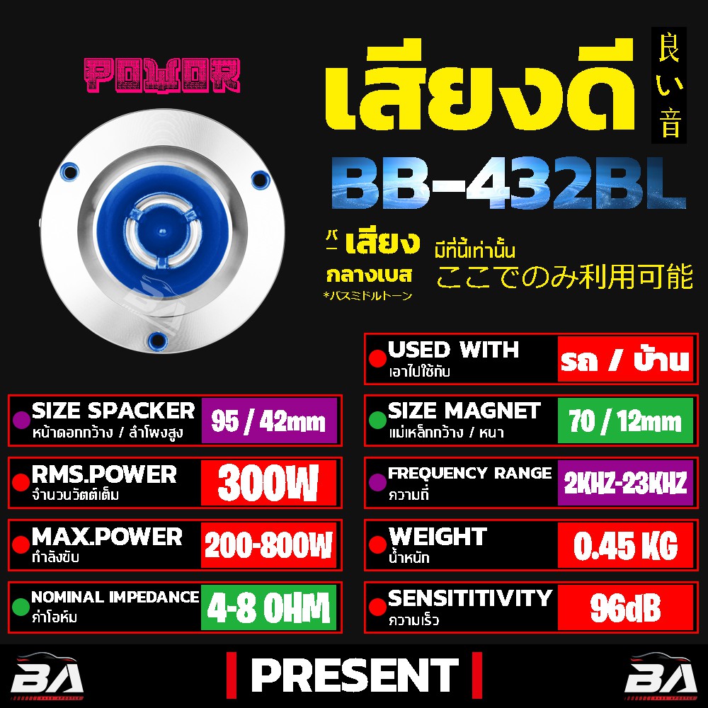 BA SOUND ทวิตเตอร์ แหลมจาน 4นิ้ว 300วัตต์ BB-432BL ลำโพงเสียงแหลมขนาด 4 นิ้ว ทวิตเตอร์จาน 4 นิ้ว ทวิตเตอร์แหลม 4 นิ้ว