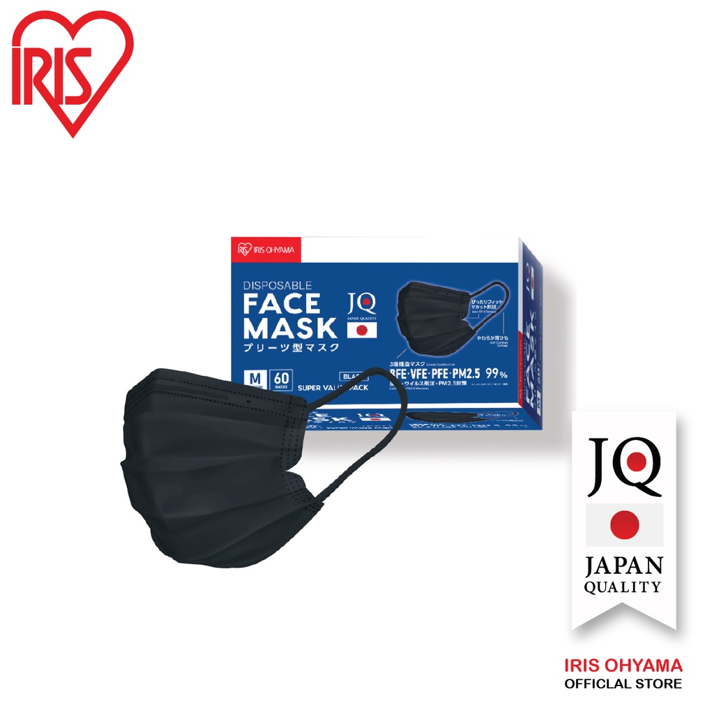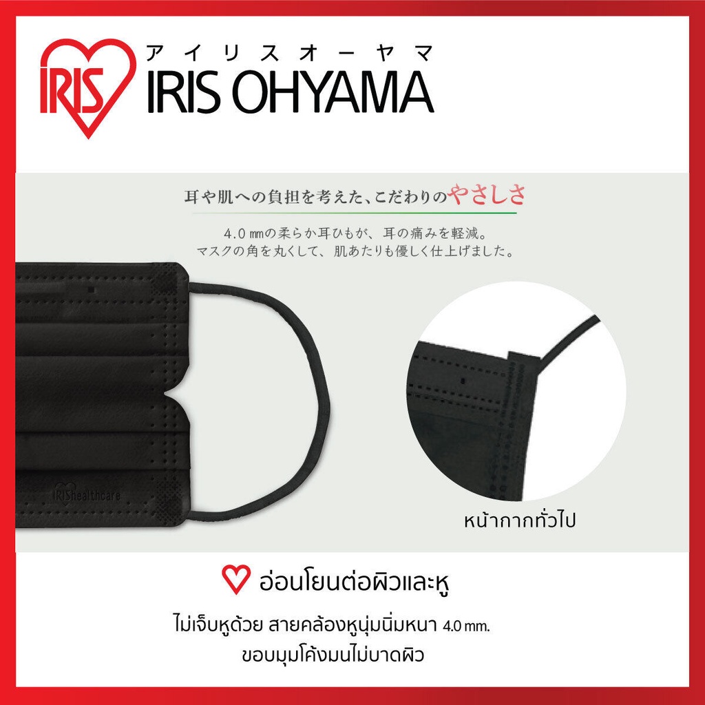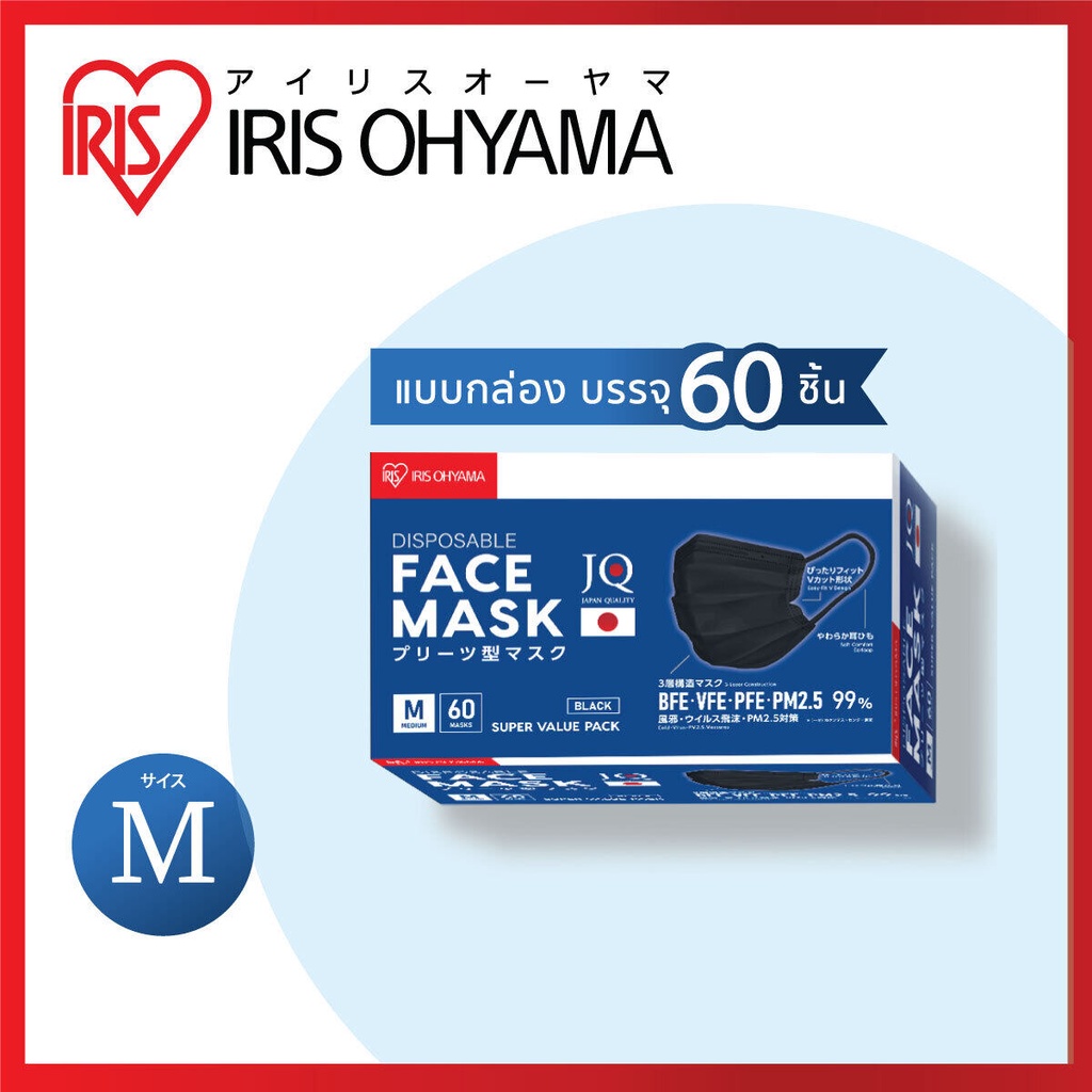 IRIS OHYAMA ไอริส โอยามะ หน้ากากอนามัย คุณภาพมาตรฐานแบรนด์ญี่ปุ่น Size M ป้องกันเชื้อโรค แบบกล่อง 60 ชิ้น สีดำ