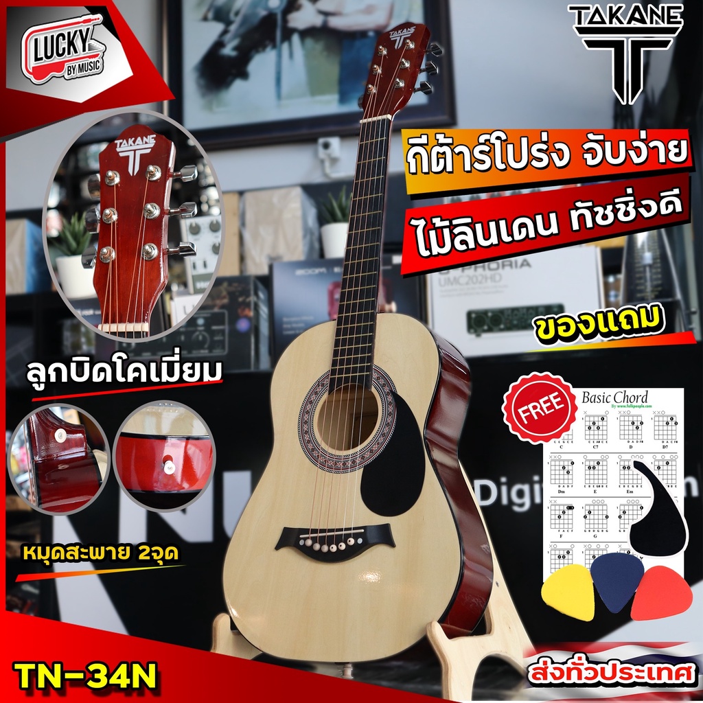 กีต้าร์โปร่ง TAKANE TN-34 ขนาด 34 นิ้ว ขนาดพกพาง่าย แถมฟรี ปิ๊กอัน คู่มือ ปิ๊กกาด(คละแบบ)