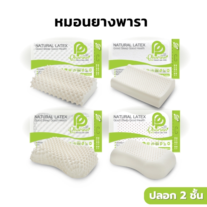 Phurinn pillow-A [งานพรีเมี่ยม] หมอนยางพาราแท้ 100% หมอน หมอนสุขภาพ จัดเรียงกระดูก 🔵ปลอกแบบ2 ชั้น🔵
