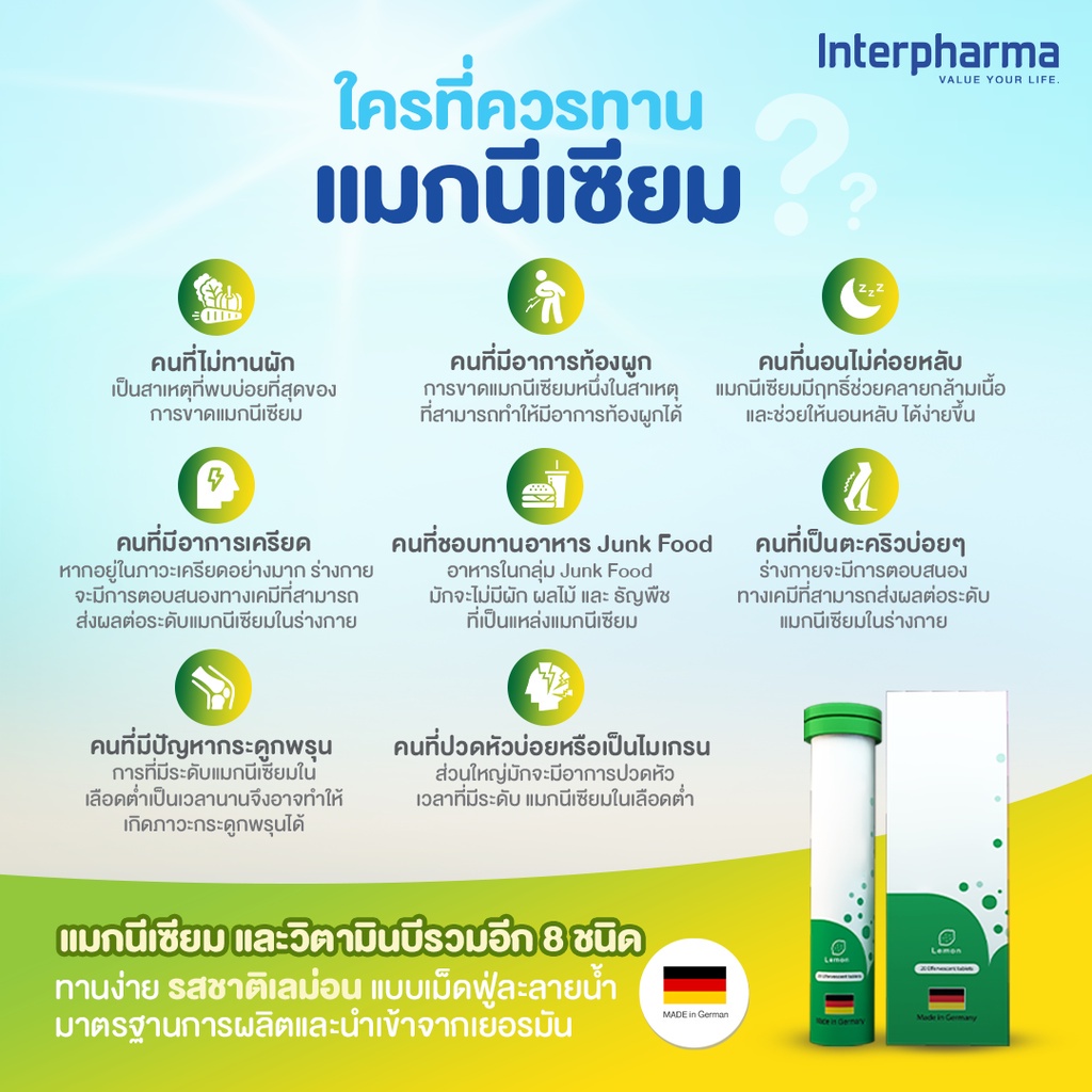 ล็อตใหม่!! Interpharma Multivitamin / Magnesium Plus B Complex / Vitamin C อินเตอร์ฟาร์มา วิตามินรวมแบบเม็ดฟู่ 20 เม็ด
