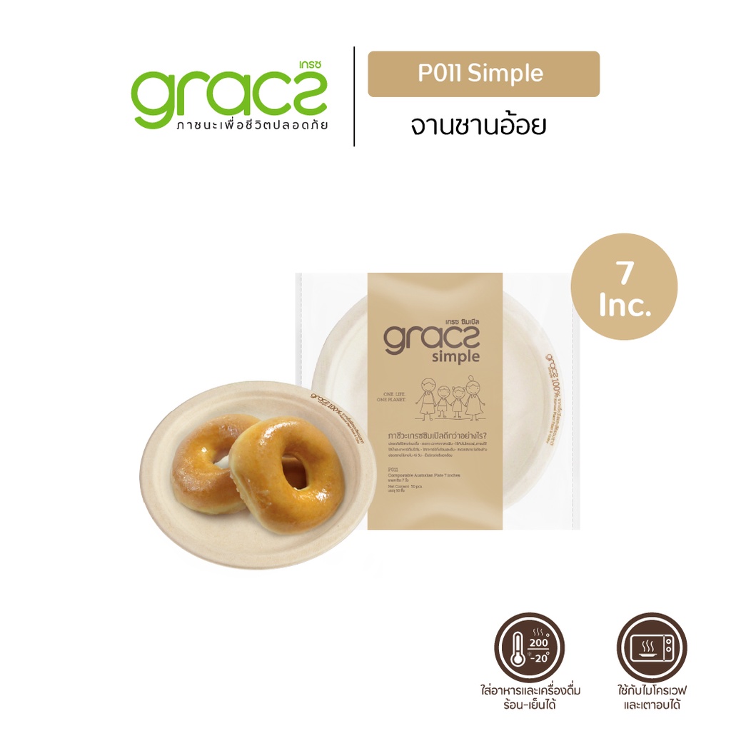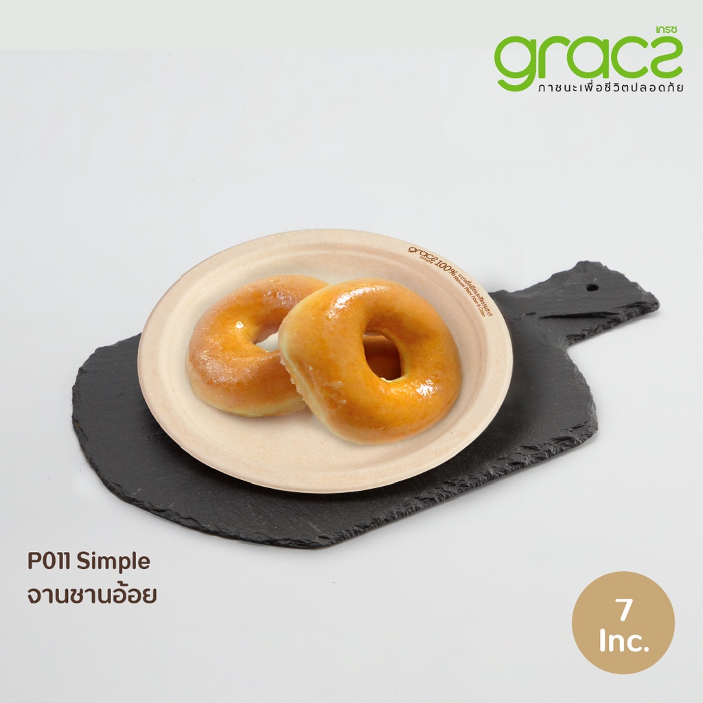 GRACZ จานอาหาร 7 นิ้ว รุ่น P011 (ยกลัง 1000 ชิ้น) (เกรซ ซิมเปิล) จานกระดาษ จานชานอ้อย เข้าไมโครเวฟได้