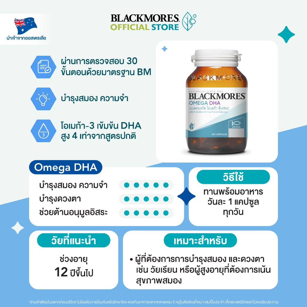 Blackmores Omega DHA (60 caps) แบลคมอร์ส โอเมก้า ดีเอชเอ (60 แคปซูล)
