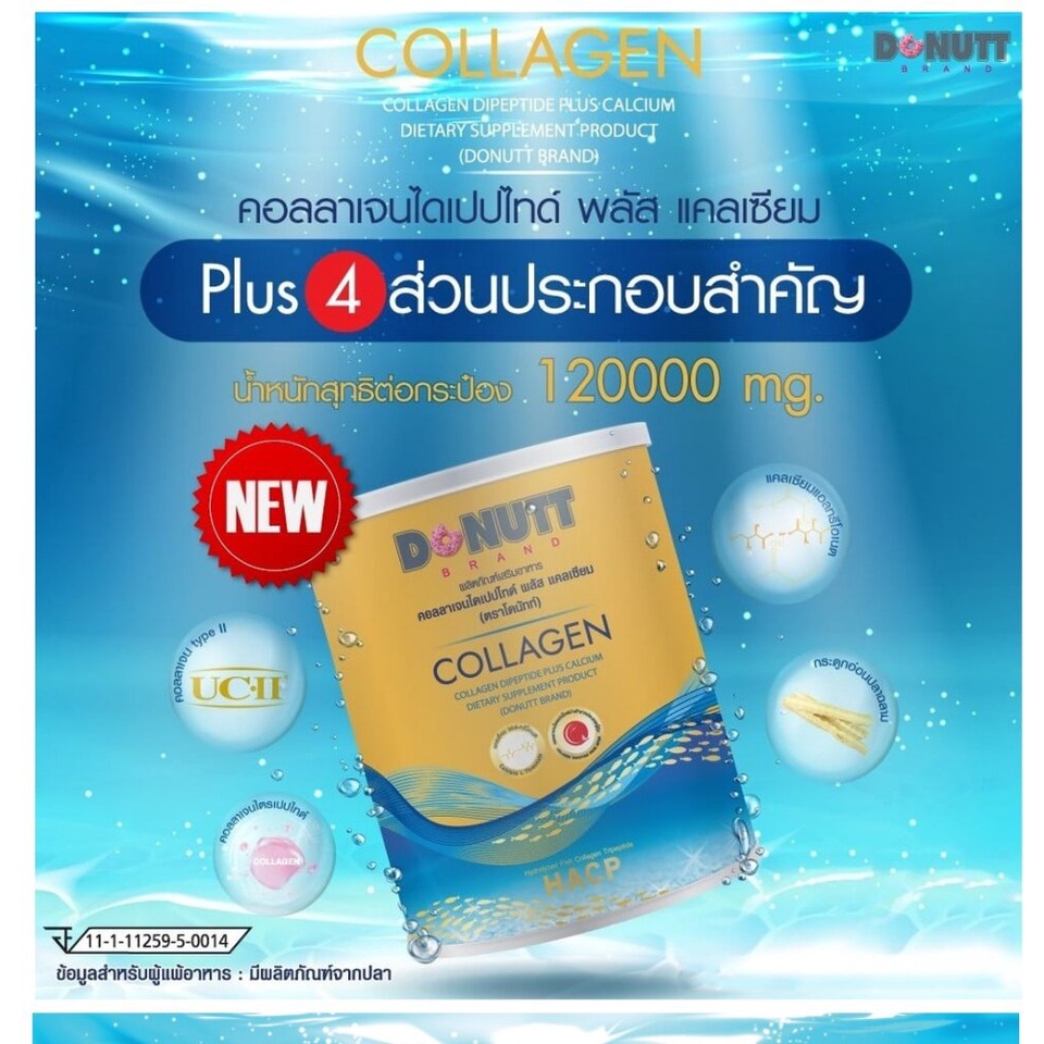 โปรโมชั่น 2 กระป๋อง Donutt Collagen Dipeptide โดนัท คอลลาเจนไดเปปไทด์พลัสแคลเซียม120,000 มก.จำนวน 2 กระป๋องทอง