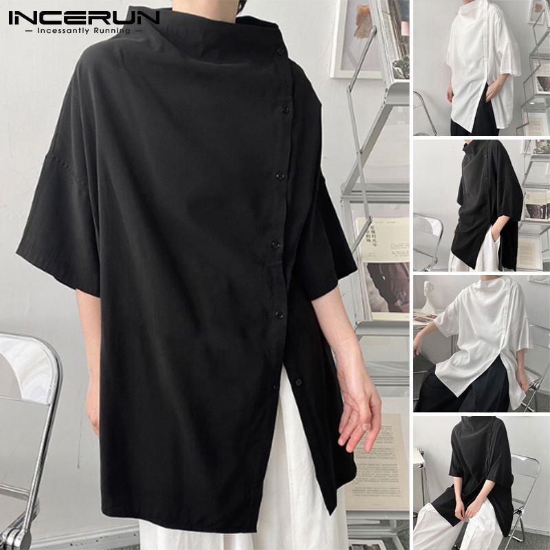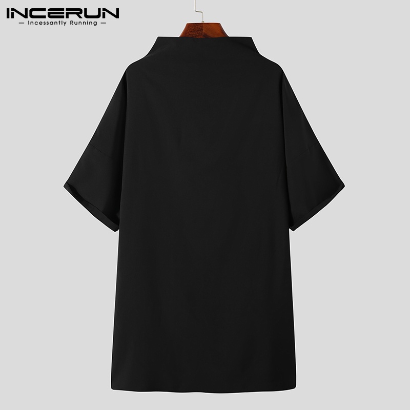 Incerun เสื้อลําลอง แขนสั้น สีพื้น ทรงหลวม แฟชั่นสําหรับผู้ชาย