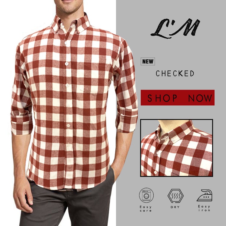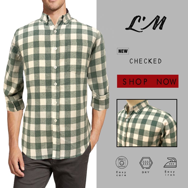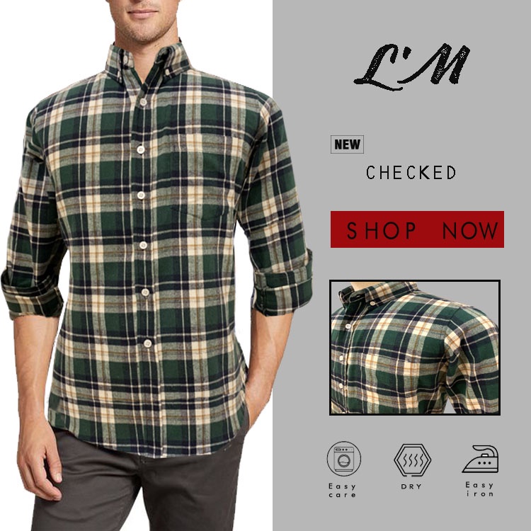 <LMOF15PER ลดสูงสด15% > เสื้อเชิ้ตสไตล์เกาหลี คุณภาพแบรนด์ดัง L'M men's style เสื้อเชิ้ต ผู้ชาย แขนยาว ลายสก็อต