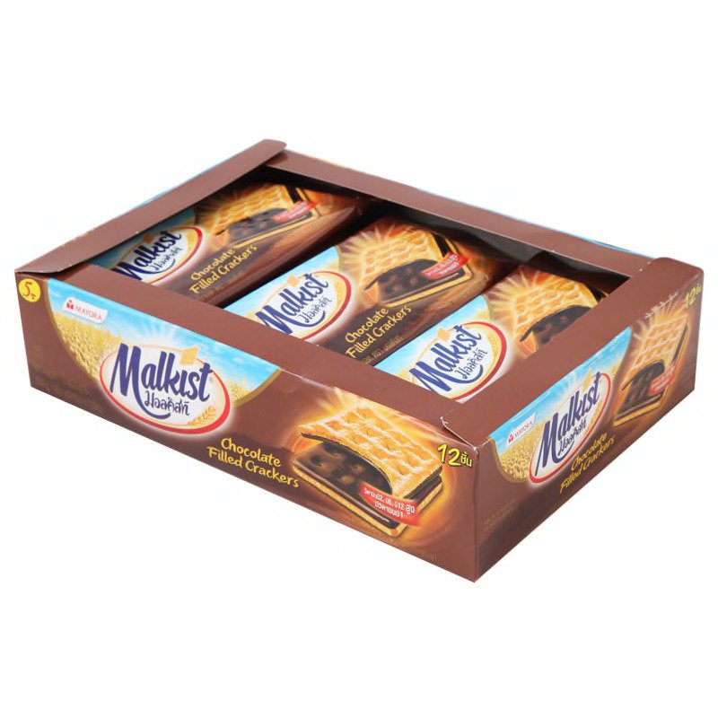 [ 3 แพ็ค ] Malkist มอลคิสท์ แครกเกอร์สอดไส้ช็อคโกแลต (36กรัม x 12ชิ้น)