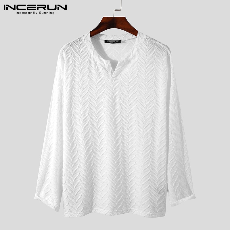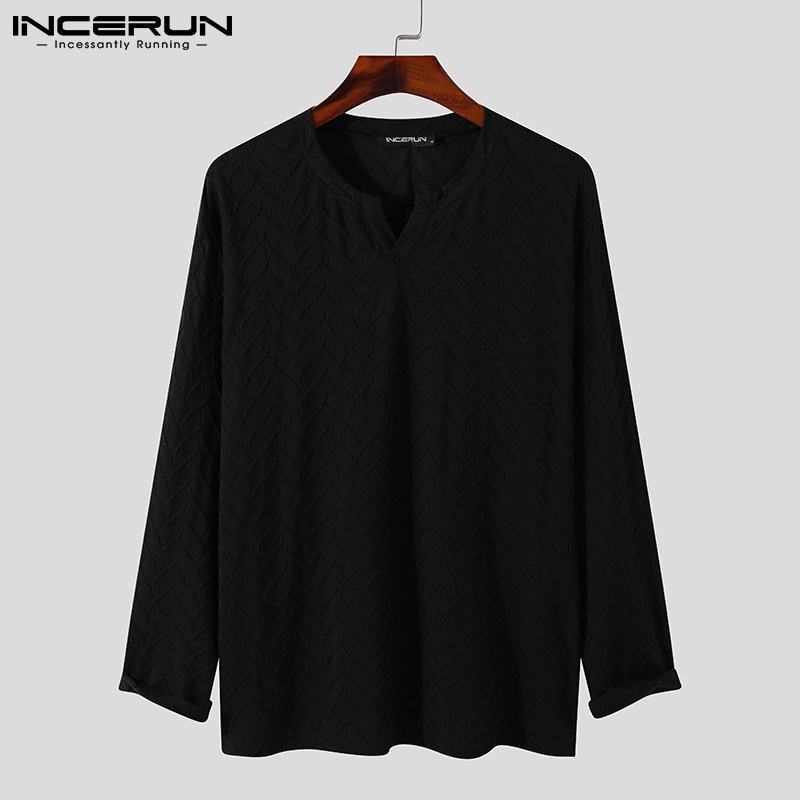 Incerun เสื้อยืดลําลอง แขนยาว คอวี ทรงหลวม แฟชั่น สําหรับผู้ชาย